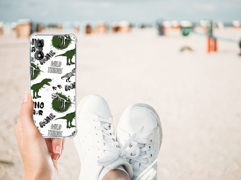 Ook een grote fan van alles wat met dinosaurussen te maken heeft? Dan mag dit hoesje met dino’s zeker niet ontbreken in jouw collectie! De skeletten, pootafdrukken en dino’s zorgen er hopelijk voor dat iedereen van jouw Motorola Moto E13 afblijft! Dit toffe dino design wordt geprint op een Case Anti-shock. Het ligt prettig in de hand en is licht van gewicht. Ook fijn zijn de extra dikke hoeken en randen, waardoor je Motorola Moto E13 goed beschermd is. Alleen de achterkant van je telefoon wordt beschermd. Daarom adviseren wij om dit hoesje in combinatie met een screenprotector te gebruiken. Bestel vandaag nog dit gevaarlijke Dinosaurus design hoesje!