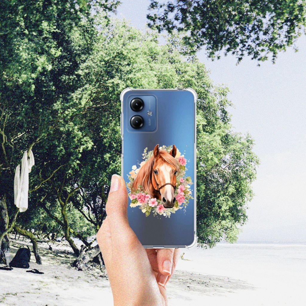 Toen we in 2014 begonnen met het bedrukken van telefoonhoesjes, was een van de eerste designs eentje met paarden erop. Nu zoveel jaar later is dit een van onze populairste hoesjes voor zowel jong als oud. Vandaar dat we nog een design toevoegen aan onze collectie met een paard erop, hopelijk wordt dit design net zo geliefd! Het design wordt geprint op een Case Anti-shock speciaal op maat gemaakt voor de Motorola Moto G14. Ook fijn zijn de extra dikke hoeken en randen, waardoor je smartphone goed beschermd is bij een val. Alleen de achterkant van je telefoon wordt beschermd. Daarom adviseren wij om dit hoesje in combinatie met een screenprotector te gebruiken. Bestel vandaag nog dit leuke telefoonhoesje met paard design!