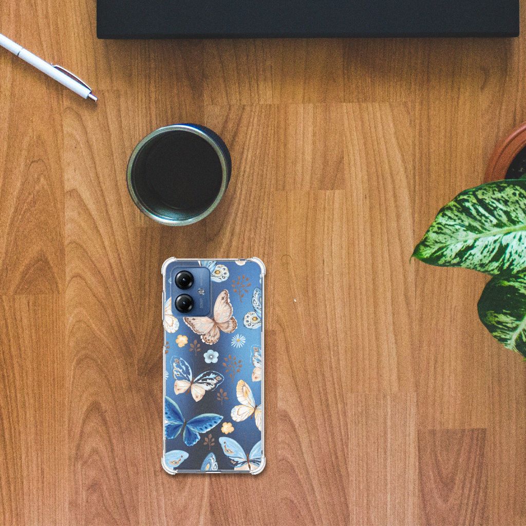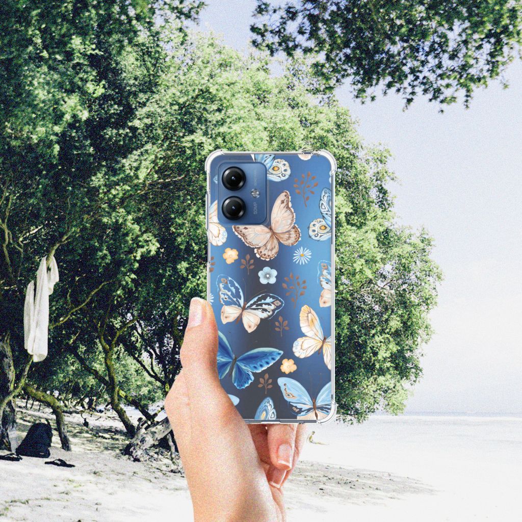 Wist je dat vlinders symbool staan voor geluk, vrijheid en liefde? Veel mensen worden daarom vrolijk als ze een vlinder voorbij zien fladderen. Hoe leuk is het dan om dit vlinder design op jouw Motorola Moto G14 te hebben? Zo wordt jij zeker vrolijk bij het zien van je telefoon. Dit vlinder design wordt geprint op een Case Anti-shock. Het ligt prettig in de hand en is licht van gewicht. Ook fijn zijn de extra dikke hoeken en randen, waardoor je Motorola Moto G14 goed beschermd is bij een val. Alleen de achterkant van je telefoon wordt beschermd. Daarom adviseren wij om dit hoesje in combinatie met een screenprotector te gebruiken. Bestel vandaag nog dit telefoonhoesje met vrolijke vlinder design!
