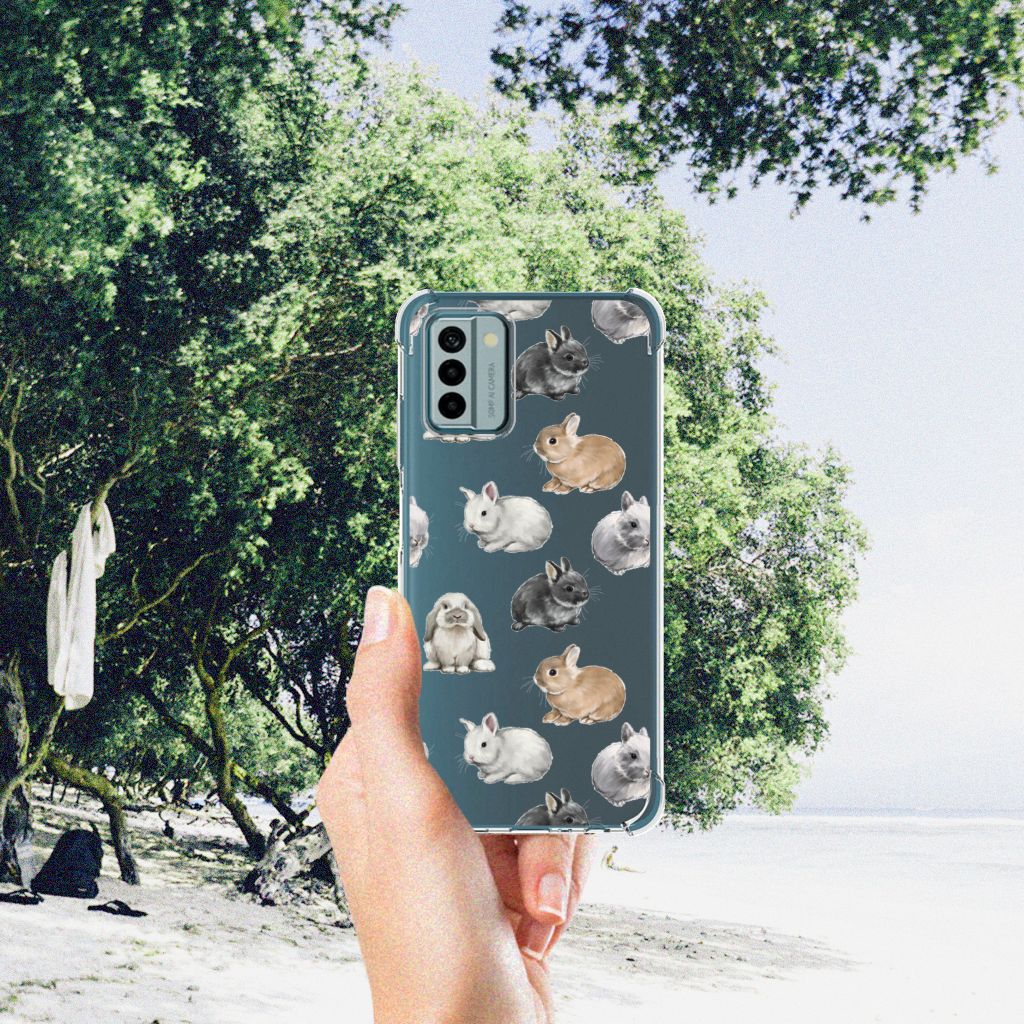 Wist je dat er wel 50 verschillende konijnenrassen zijn die zich onderscheiden in kleur, vacht, bouw en formaat? Daarom kon dit design met konijntjes eigenlijk niet ontbreken in onze collectie hoesjes. Wij zijn in ieder geval helemaal verliefd op deze schattige konijntjes. Dit design wordt geprint op een Case Anti-shock speciaal op maat gemaakt voor de Nokia G22. Ook fijn zijn de extra dikke hoeken en randen, waardoor je smartphone goed beschermd is bij een val. Alleen de achterkant van je telefoon wordt beschermd. Daarom adviseren wij om dit hoesje in combinatie met een screenprotector te gebruiken. Bestel vandaag nog dit telefoonhoesje met super schattige konijntjes!