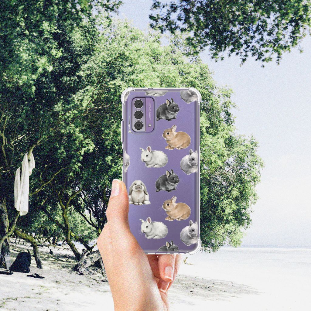 Wist je dat er wel 50 verschillende konijnenrassen zijn die zich onderscheiden in kleur, vacht, bouw en formaat? Daarom kon dit design met konijntjes eigenlijk niet ontbreken in onze collectie hoesjes. Wij zijn in ieder geval helemaal verliefd op deze schattige konijntjes. Dit design wordt geprint op een Case Anti-shock speciaal op maat gemaakt voor de Nokia G42. Ook fijn zijn de extra dikke hoeken en randen, waardoor je smartphone goed beschermd is bij een val. Alleen de achterkant van je telefoon wordt beschermd. Daarom adviseren wij om dit hoesje in combinatie met een screenprotector te gebruiken. Bestel vandaag nog dit telefoonhoesje met super schattige konijntjes!