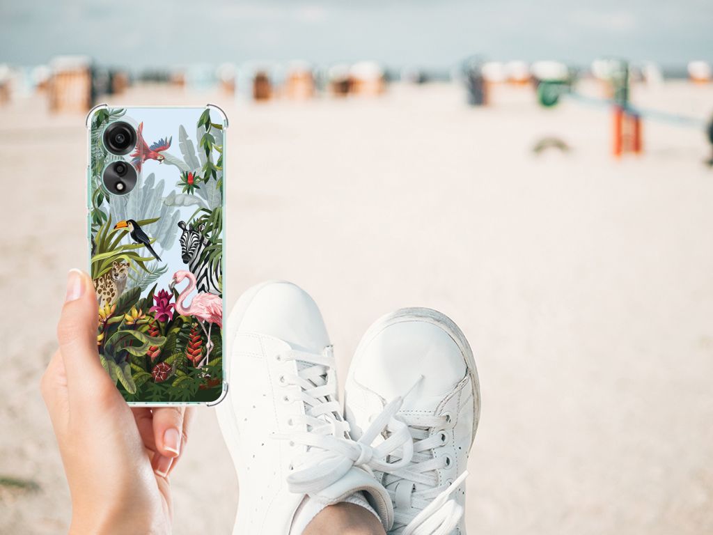 Ben je op zoek naar een tropische verrassing voor je OPPO A78 4G? Dan is dit hoesje in jungle stijl zeker iets voor jou! Met de verschillende soorten dieren waan je je even in de Jungle, vind je ook niet? Dit design wordt geprint op een Case Anti-shock. Het ligt prettig in de hand en is licht van gewicht. Ook fijn zijn de extra dikke hoeken en randen, waardoor je OPPO A78 4G goed beschermd is bij een val. Alleen de achterkant van je telefoon wordt beschermd. Daarom adviseren wij om dit hoesje in combinatie met een screenprotector te gebruiken. Bestel vandaag nog met dit telefoonhoesje met stoere jungle design!