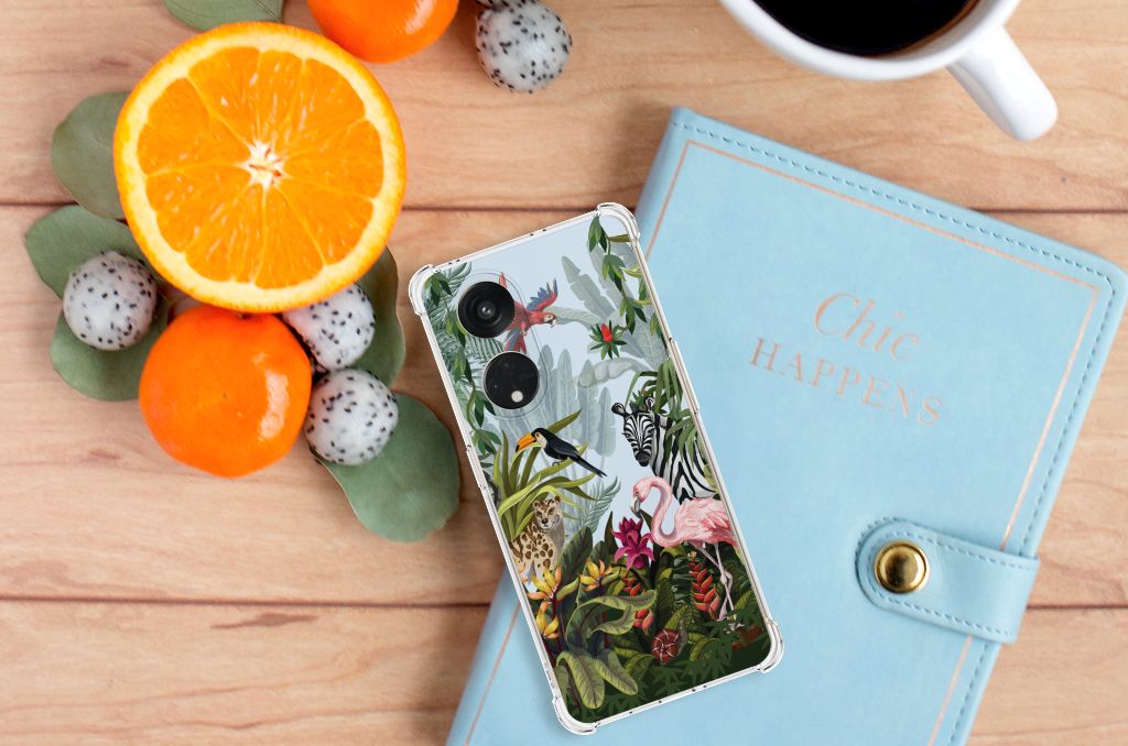 Ben je op zoek naar een tropische verrassing voor je OPPO Reno8 T 5G? Dan is dit hoesje in jungle stijl zeker iets voor jou! Met de verschillende soorten dieren waan je je even in de Jungle, vind je ook niet? Dit design wordt geprint op een Case Anti-shock. Het ligt prettig in de hand en is licht van gewicht. Ook fijn zijn de extra dikke hoeken en randen, waardoor je OPPO Reno8 T 5G goed beschermd is bij een val. Alleen de achterkant van je telefoon wordt beschermd. Daarom adviseren wij om dit hoesje in combinatie met een screenprotector te gebruiken. Bestel vandaag nog met dit telefoonhoesje met stoere jungle design!