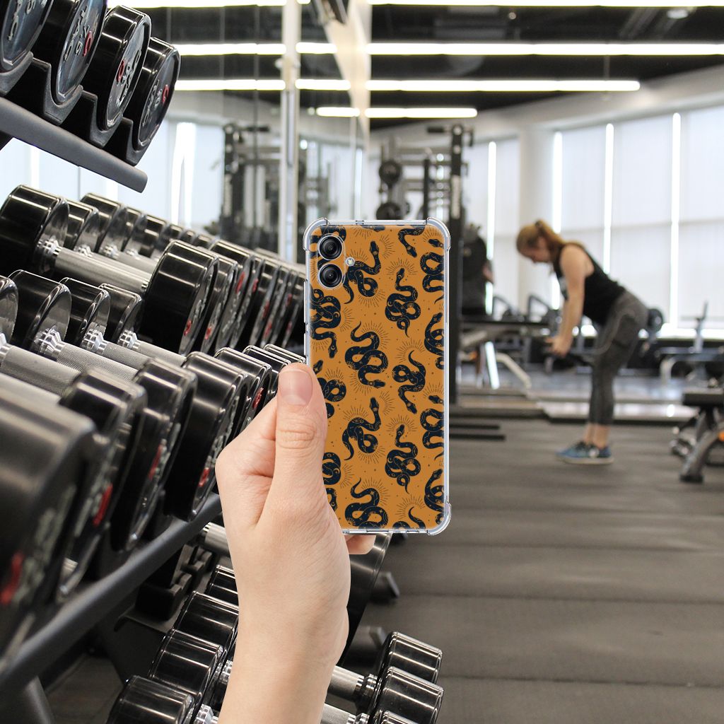 Slangen worden gekenmerkt door hun zeer lange en dunne lichaam en het ontbreken van ledematen. Wist je dat er ruim 3800 soorten slangen zijn? Waarvan maar 15% giftig is. Gelukkig is dit snakes design niet giftig! Hoe tof is dit design? 100% zeker dat jij opvalt met dit unieke snakes hoesje voor je Samsung Galaxy A04e. Het design wordt geprint op een Case Anti-shock en ligt prettig in de hand. Ook fijn zijn de extra dikke hoeken en randen, waardoor je Samsung Galaxy A04e goed beschermd is bij een val. Alleen de achterkant van je telefoon wordt beschermd. Daarom adviseren wij om dit hoesje in combinatie met een screenprotector te gebruiken. Bestel vandaag nog met dit telefoonhoesje met toffe snakes design!