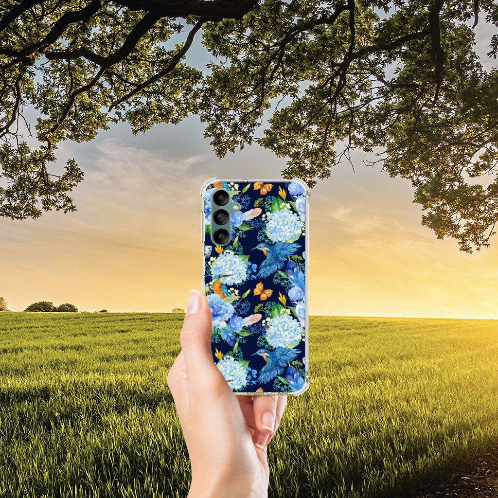 Wist je dat een ijsvogel ook wel vaak ‘’blauwe flits’’ wordt genoemd? Vliegend en jagend halen ze snelheden tot 80 k/m uur, waardoor je ze bijna niet ziet zitten. Onze ijsvogel blijft gelukkig wel zitten tussen de bloemen. Dit ijsvogel design wordt geprint op een Case Anti-shock speciaal op maat gemaakt voor de Samsung Galaxy A24. Ook fijn zijn de extra dikke hoeken en randen, waardoor je smartphone goed beschermd is bij een val. Alleen de achterkant van je telefoon wordt beschermd. Daarom adviseren wij om dit hoesje in combinatie met een screenprotector te gebruiken. Bestel vandaag nog dit telefoonhoesje met ijsvogel design!