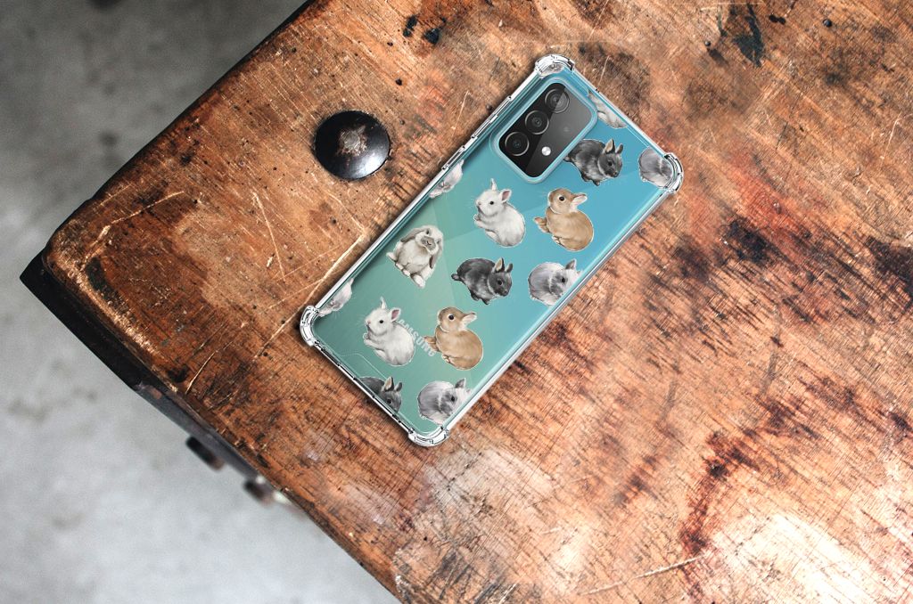 Wist je dat er wel 50 verschillende konijnenrassen zijn die zich onderscheiden in kleur, vacht, bouw en formaat? Daarom kon dit design met konijntjes eigenlijk niet ontbreken in onze collectie hoesjes. Wij zijn in ieder geval helemaal verliefd op deze schattige konijntjes. Dit design wordt geprint op een Case Anti-shock speciaal op maat gemaakt voor de Samsung Galaxy A52 4G/5G. Ook fijn zijn de extra dikke hoeken en randen, waardoor je smartphone goed beschermd is bij een val. Alleen de achterkant van je telefoon wordt beschermd. Daarom adviseren wij om dit hoesje in combinatie met een screenprotector te gebruiken. Bestel vandaag nog dit telefoonhoesje met super schattige konijntjes!