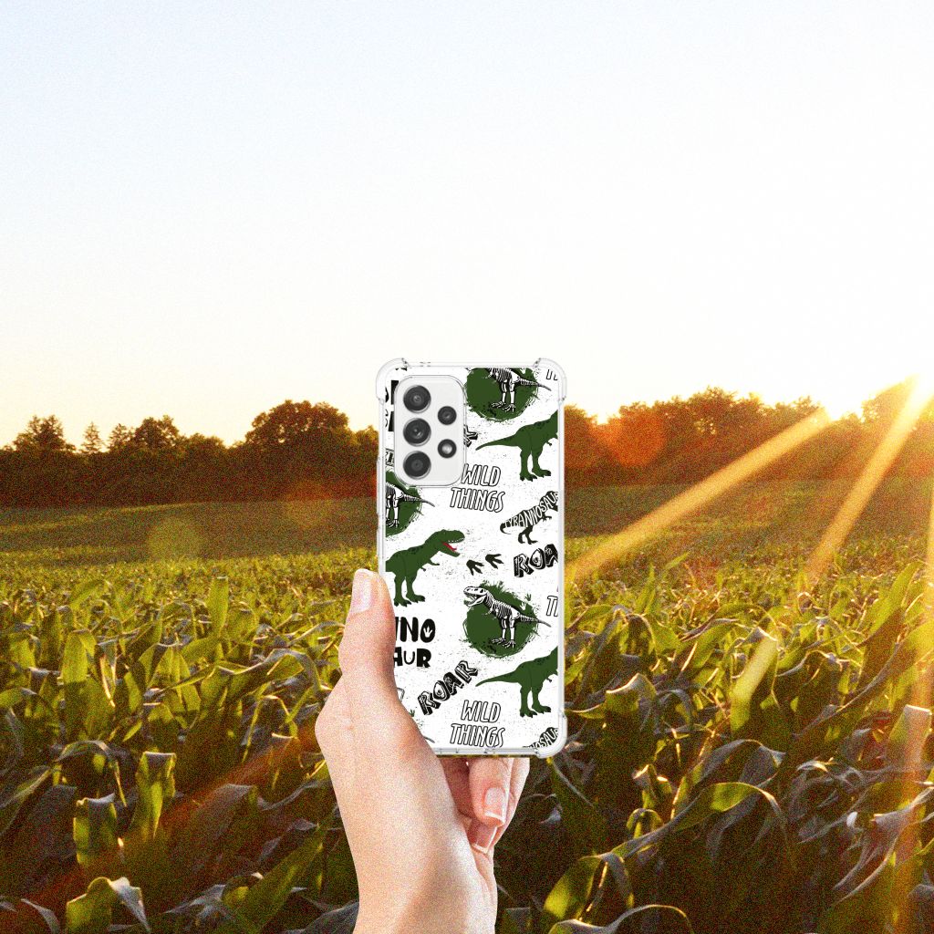 Ook een grote fan van alles wat met dinosaurussen te maken heeft? Dan mag dit hoesje met dino’s zeker niet ontbreken in jouw collectie! De skeletten, pootafdrukken en dino’s zorgen er hopelijk voor dat iedereen van jouw Samsung Galaxy A53 5G afblijft! Dit toffe dino design wordt geprint op een Case Anti-shock. Het ligt prettig in de hand en is licht van gewicht. Ook fijn zijn de extra dikke hoeken en randen, waardoor je Samsung Galaxy A53 5G goed beschermd is. Alleen de achterkant van je telefoon wordt beschermd. Daarom adviseren wij om dit hoesje in combinatie met een screenprotector te gebruiken. Bestel vandaag nog dit gevaarlijke Dinosaurus design hoesje!