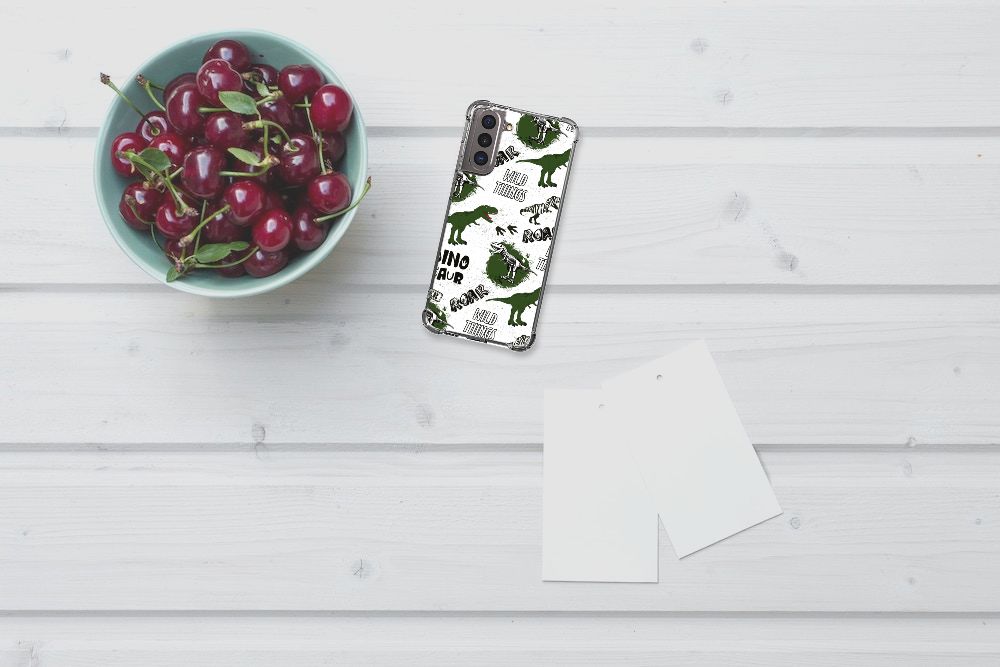 Ook een grote fan van alles wat met dinosaurussen te maken heeft? Dan mag dit hoesje met dino’s zeker niet ontbreken in jouw collectie! De skeletten, pootafdrukken en dino’s zorgen er hopelijk voor dat iedereen van jouw Samsung Galaxy S21 afblijft! Dit toffe dino design wordt geprint op een Case Anti-shock. Het ligt prettig in de hand en is licht van gewicht. Ook fijn zijn de extra dikke hoeken en randen, waardoor je Samsung Galaxy S21 goed beschermd is. Alleen de achterkant van je telefoon wordt beschermd. Daarom adviseren wij om dit hoesje in combinatie met een screenprotector te gebruiken. Bestel vandaag nog dit gevaarlijke Dinosaurus design hoesje!