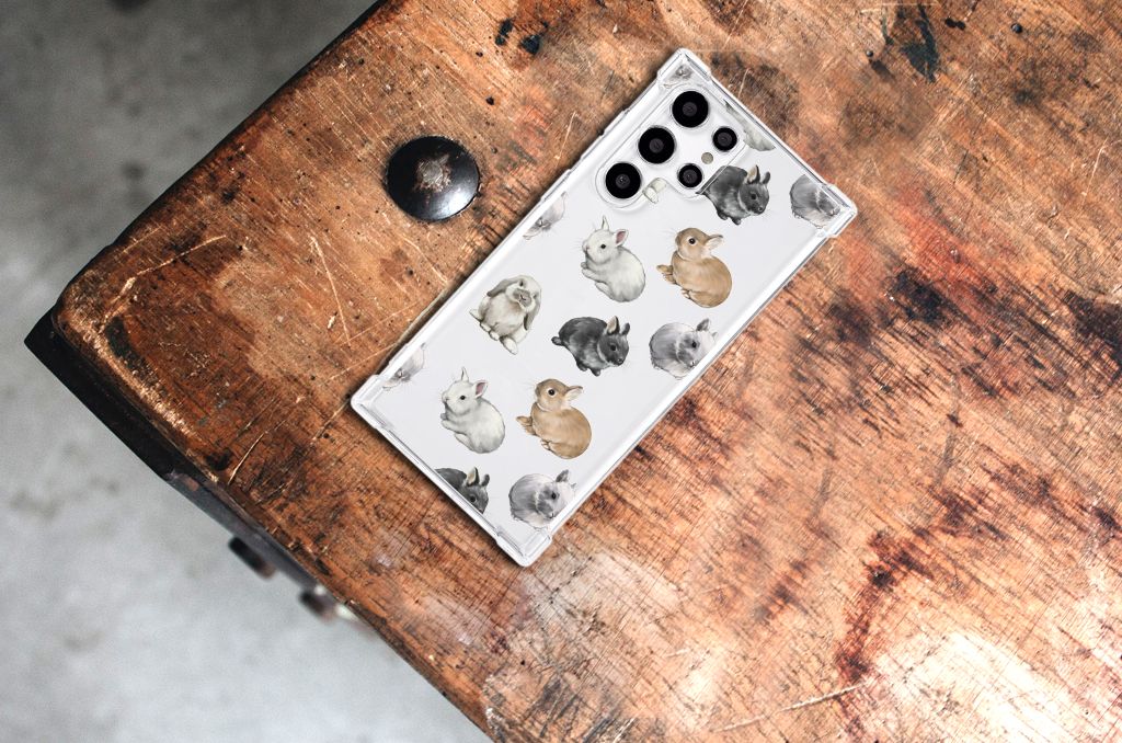 Wist je dat er wel 50 verschillende konijnenrassen zijn die zich onderscheiden in kleur, vacht, bouw en formaat? Daarom kon dit design met konijntjes eigenlijk niet ontbreken in onze collectie hoesjes. Wij zijn in ieder geval helemaal verliefd op deze schattige konijntjes. Dit design wordt geprint op een Case Anti-shock speciaal op maat gemaakt voor de Samsung Galaxy S22 Ultra. Ook fijn zijn de extra dikke hoeken en randen, waardoor je smartphone goed beschermd is bij een val. Alleen de achterkant van je telefoon wordt beschermd. Daarom adviseren wij om dit hoesje in combinatie met een screenprotector te gebruiken. Bestel vandaag nog dit telefoonhoesje met super schattige konijntjes!