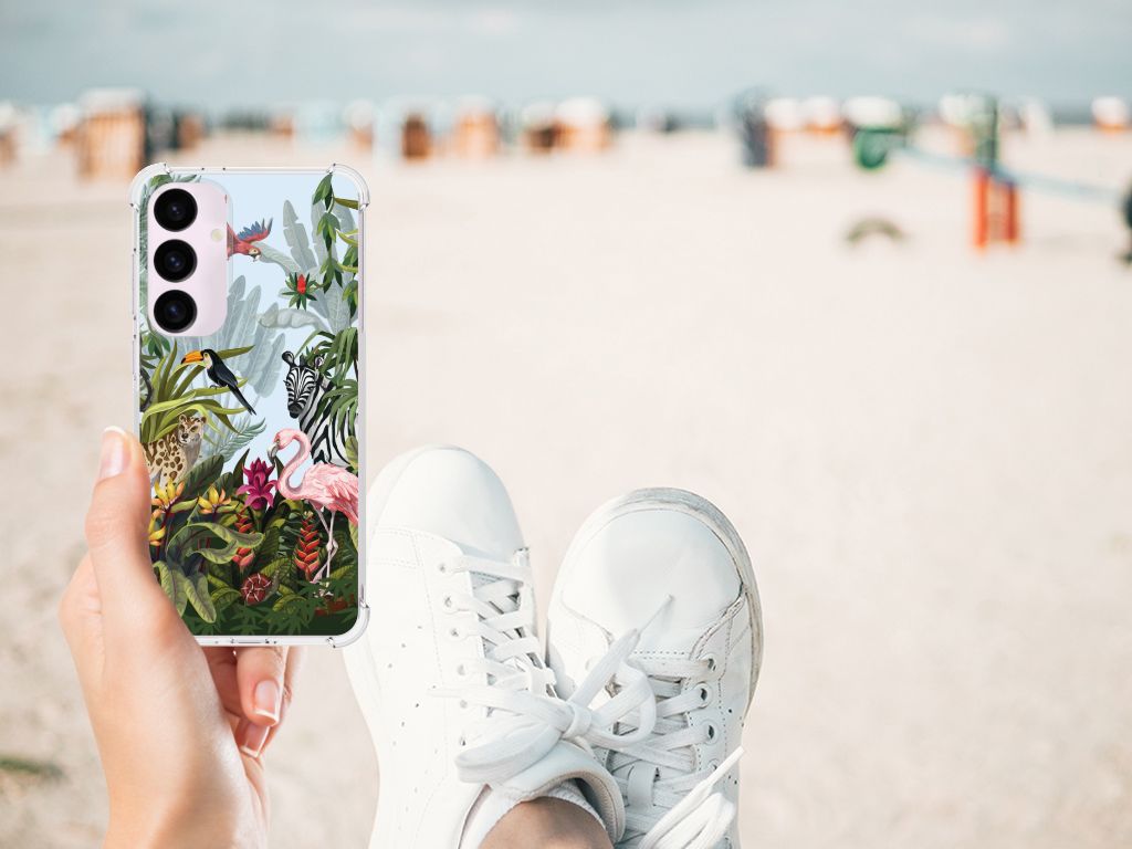 Ben je op zoek naar een tropische verrassing voor je Samsung Galaxy S24 Plus? Dan is dit hoesje in jungle stijl zeker iets voor jou! Met de verschillende soorten dieren waan je je even in de Jungle, vind je ook niet? Dit design wordt geprint op een Case Anti-shock. Het ligt prettig in de hand en is licht van gewicht. Ook fijn zijn de extra dikke hoeken en randen, waardoor je Samsung Galaxy S24 Plus goed beschermd is bij een val. Alleen de achterkant van je telefoon wordt beschermd. Daarom adviseren wij om dit hoesje in combinatie met een screenprotector te gebruiken. Bestel vandaag nog met dit telefoonhoesje met stoere jungle design!