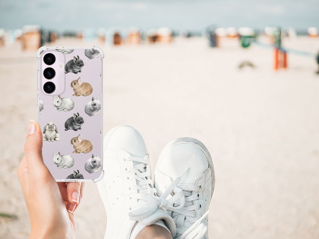 Wist je dat er wel 50 verschillende konijnenrassen zijn die zich onderscheiden in kleur, vacht, bouw en formaat? Daarom kon dit design met konijntjes eigenlijk niet ontbreken in onze collectie hoesjes. Wij zijn in ieder geval helemaal verliefd op deze schattige konijntjes. Dit design wordt geprint op een Case Anti-shock speciaal op maat gemaakt voor de Samsung Galaxy S24 Plus. Ook fijn zijn de extra dikke hoeken en randen, waardoor je smartphone goed beschermd is bij een val. Alleen de achterkant van je telefoon wordt beschermd. Daarom adviseren wij om dit hoesje in combinatie met een screenprotector te gebruiken. Bestel vandaag nog dit telefoonhoesje met super schattige konijntjes!