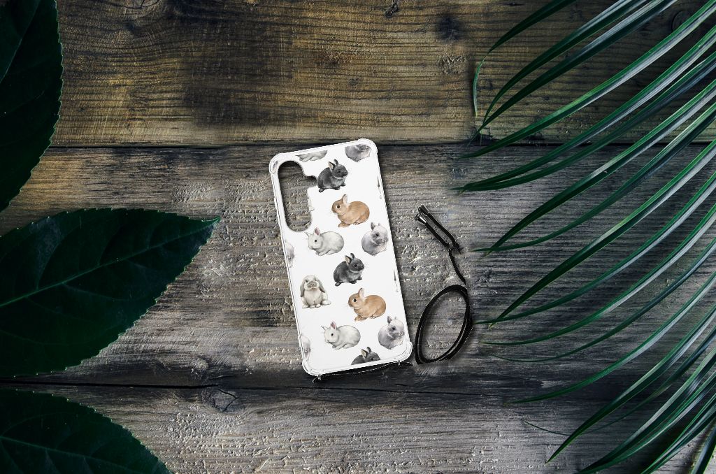 Wist je dat er wel 50 verschillende konijnenrassen zijn die zich onderscheiden in kleur, vacht, bouw en formaat? Daarom kon dit design met konijntjes eigenlijk niet ontbreken in onze collectie hoesjes. Wij zijn in ieder geval helemaal verliefd op deze schattige konijntjes. Dit design wordt geprint op een Case Anti-shock speciaal op maat gemaakt voor de Samsung Galaxy S24 Plus. Ook fijn zijn de extra dikke hoeken en randen, waardoor je smartphone goed beschermd is bij een val. Alleen de achterkant van je telefoon wordt beschermd. Daarom adviseren wij om dit hoesje in combinatie met een screenprotector te gebruiken. Bestel vandaag nog dit telefoonhoesje met super schattige konijntjes!