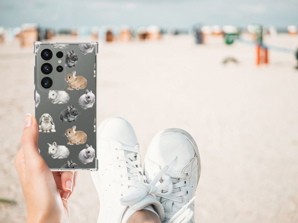 Wist je dat er wel 50 verschillende konijnenrassen zijn die zich onderscheiden in kleur, vacht, bouw en formaat? Daarom kon dit design met konijntjes eigenlijk niet ontbreken in onze collectie hoesjes. Wij zijn in ieder geval helemaal verliefd op deze schattige konijntjes. Dit design wordt geprint op een Case Anti-shock speciaal op maat gemaakt voor de Samsung Galaxy S24 Ultra. Ook fijn zijn de extra dikke hoeken en randen, waardoor je smartphone goed beschermd is bij een val. Alleen de achterkant van je telefoon wordt beschermd. Daarom adviseren wij om dit hoesje in combinatie met een screenprotector te gebruiken. Bestel vandaag nog dit telefoonhoesje met super schattige konijntjes!