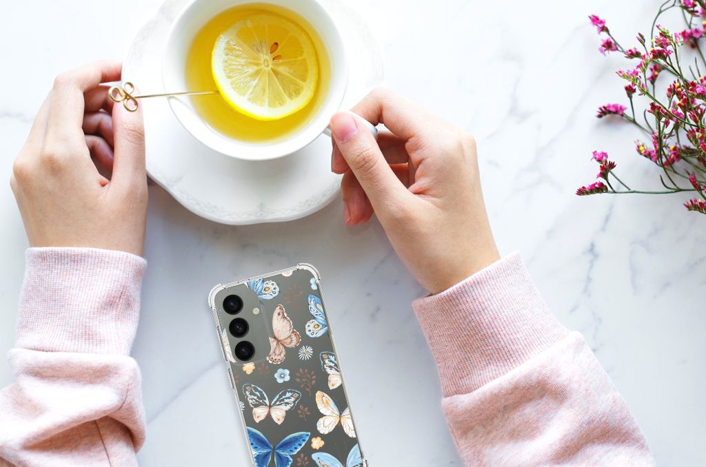 Wist je dat vlinders symbool staan voor geluk, vrijheid en liefde? Veel mensen worden daarom vrolijk als ze een vlinder voorbij zien fladderen. Hoe leuk is het dan om dit vlinder design op jouw Samsung Galaxy S24 te hebben? Zo wordt jij zeker vrolijk bij het zien van je telefoon. Dit vlinder design wordt geprint op een Case Anti-shock. Het ligt prettig in de hand en is licht van gewicht. Ook fijn zijn de extra dikke hoeken en randen, waardoor je Samsung Galaxy S24 goed beschermd is bij een val. Alleen de achterkant van je telefoon wordt beschermd. Daarom adviseren wij om dit hoesje in combinatie met een screenprotector te gebruiken. Bestel vandaag nog dit telefoonhoesje met vrolijke vlinder design!