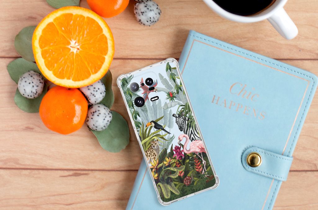 Ben je op zoek naar een tropische verrassing voor je Xiaomi 13 Pro? Dan is dit hoesje in jungle stijl zeker iets voor jou! Met de verschillende soorten dieren waan je je even in de Jungle, vind je ook niet? Dit design wordt geprint op een Case Anti-shock. Het ligt prettig in de hand en is licht van gewicht. Ook fijn zijn de extra dikke hoeken en randen, waardoor je Xiaomi 13 Pro goed beschermd is bij een val. Alleen de achterkant van je telefoon wordt beschermd. Daarom adviseren wij om dit hoesje in combinatie met een screenprotector te gebruiken. Bestel vandaag nog met dit telefoonhoesje met stoere jungle design!