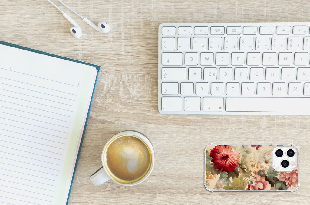 iPhone 14 Pro Hoesje Beige Flowers