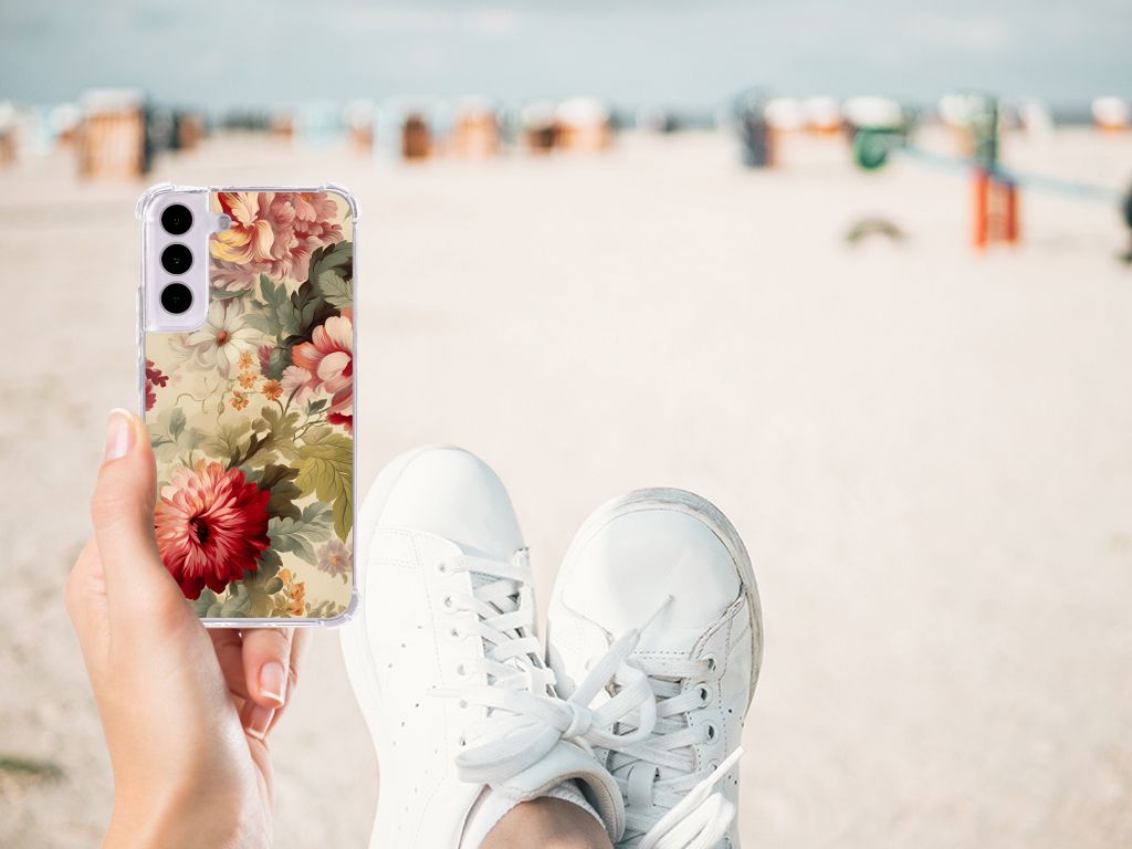Wij (vrouwen) krijgen geen genoeg van chocolade, schoenen en bloemen. Daarom mag dit prachtige bloemen hoesje zeker niet ontbreken in onze collectie design hoesjes. Wij krijgen hier romantische vibes van, jij ook? Dit design wordt geprint op een Case speciaal op maat gemaakt voor de Samsung Galaxy S22. Ook fijn zijn de extra dikke hoeken en randen, waardoor je smartphone goed beschermd is bij een val. Alleen de achterkant van je telefoon wordt beschermd. Daarom adviseren wij om dit hoesje in combinatie met een screenprotector te gebruiken. Bestel vandaag nog dit telefoonhoesje met romantische bloemen!