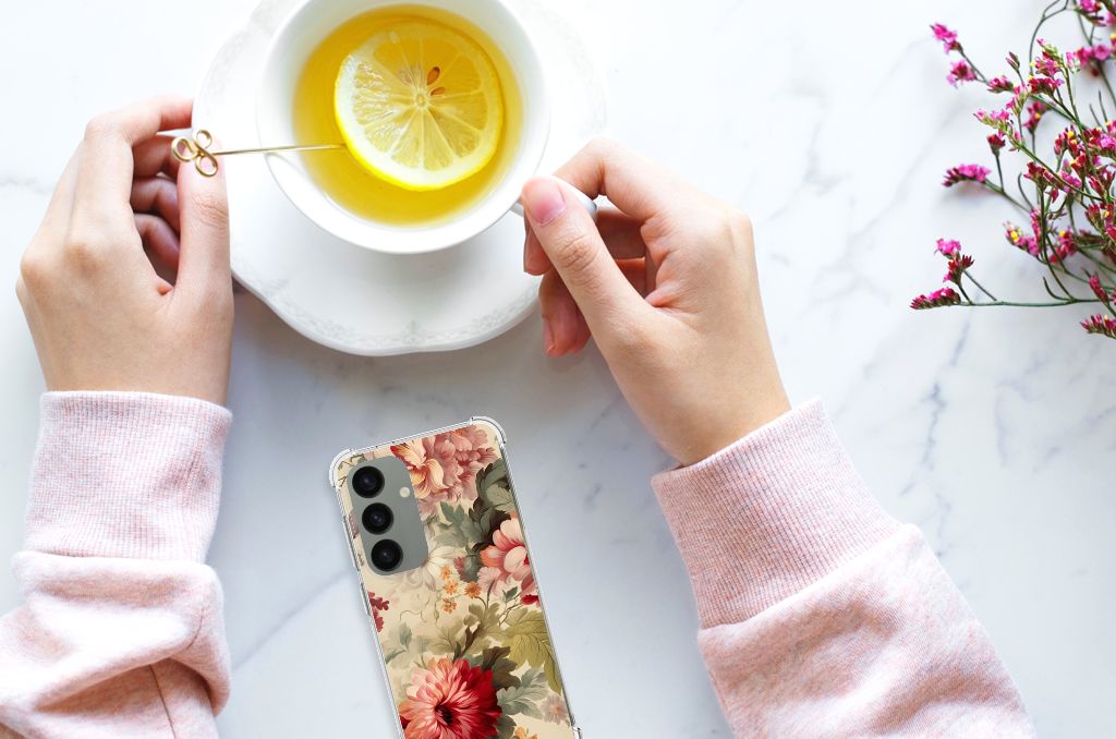 Wij (vrouwen) krijgen geen genoeg van chocolade, schoenen en bloemen. Daarom mag dit prachtige bloemen hoesje zeker niet ontbreken in onze collectie design hoesjes. Wij krijgen hier romantische vibes van, jij ook? Dit design wordt geprint op een Case speciaal op maat gemaakt voor de Samsung Galaxy S24. Ook fijn zijn de extra dikke hoeken en randen, waardoor je smartphone goed beschermd is bij een val. Alleen de achterkant van je telefoon wordt beschermd. Daarom adviseren wij om dit hoesje in combinatie met een screenprotector te gebruiken. Bestel vandaag nog dit telefoonhoesje met romantische bloemen!