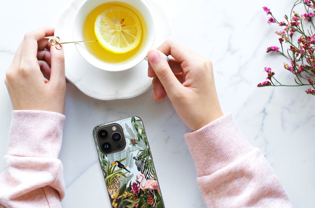Ben je op zoek naar een tropische verrassing voor je iPhone 15 Pro? Dan is dit hoesje in jungle stijl zeker iets voor jou! Met de verschillende soorten dieren waan je je even in de jungle, vind je ook niet? Dit design wordt geprint op een Dierenprint Telefoonhoesje. Het ligt prettig in de hand en is licht van gewicht. Het is een mix van hardcase en TPU. Deze combinatie samen zorgt wat ons betreft voor een perfect hoesje als je van niet te veel poespas houdt. Alleen de achterkant van je telefoon wordt beschermd. Daarom adviseren wij om dit hoesje in combinatie met een screenprotector te gebruiken. Bestel vandaag nog dit toffe smartphonehoesje met stoere jungle design!