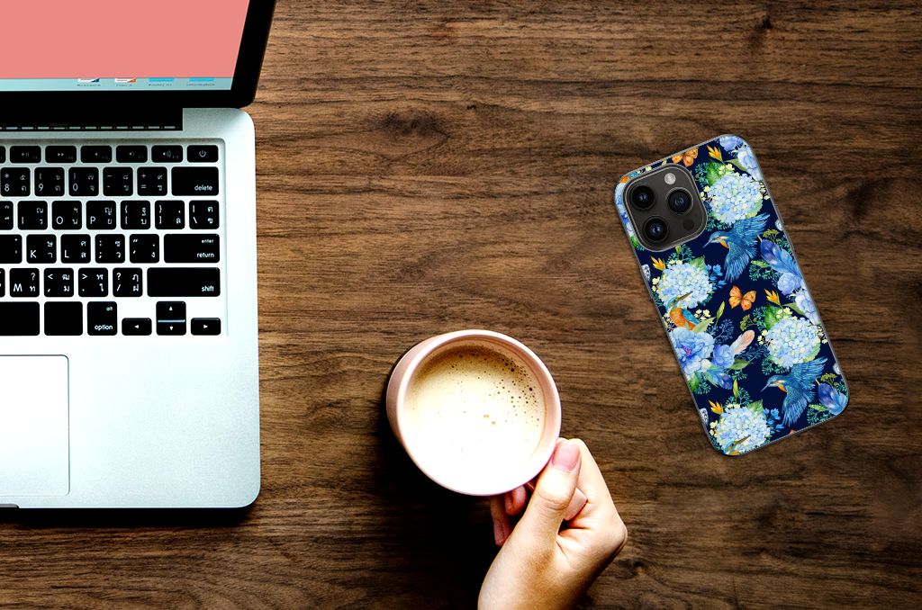 Wist je dat een ijsvogel ook wel vaak ‘’blauwe flits’’ wordt genoemd? Vliegend en jagend halen ze snelheden tot 80 k/m uur, waardoor je ze bijna niet ziet zitten. Onze ijsvogel blijft gelukkig wel zitten tussen de bloemen. Dit ijsvogel design wordt geprint op een Dierenprint Telefoonhoesje speciaal op maat gemaakt voor de iPhone 15 Pro Max. Het ligt prettig in de hand en is licht van gewicht. Het is een mix van hardcase en TPU. Deze combinatie samen zorgt wat ons betreft voor een perfect hoesje als je van niet te veel poespas houdt. Alleen de achterkant van je telefoon wordt beschermd. Daarom adviseren wij om dit hoesje in combinatie met een screenprotector te gebruiken. Bestel vandaag nog dit prachtige ijsvogel hoesje!