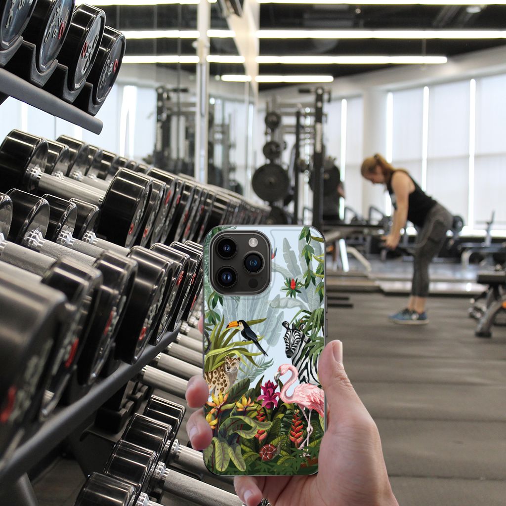 Ben je op zoek naar een tropische verrassing voor je iPhone 15 Pro Max? Dan is dit hoesje in jungle stijl zeker iets voor jou! Met de verschillende soorten dieren waan je je even in de jungle, vind je ook niet? Dit design wordt geprint op een Dierenprint Telefoonhoesje. Het ligt prettig in de hand en is licht van gewicht. Het is een mix van hardcase en TPU. Deze combinatie samen zorgt wat ons betreft voor een perfect hoesje als je van niet te veel poespas houdt. Alleen de achterkant van je telefoon wordt beschermd. Daarom adviseren wij om dit hoesje in combinatie met een screenprotector te gebruiken. Bestel vandaag nog dit toffe smartphonehoesje met stoere jungle design!