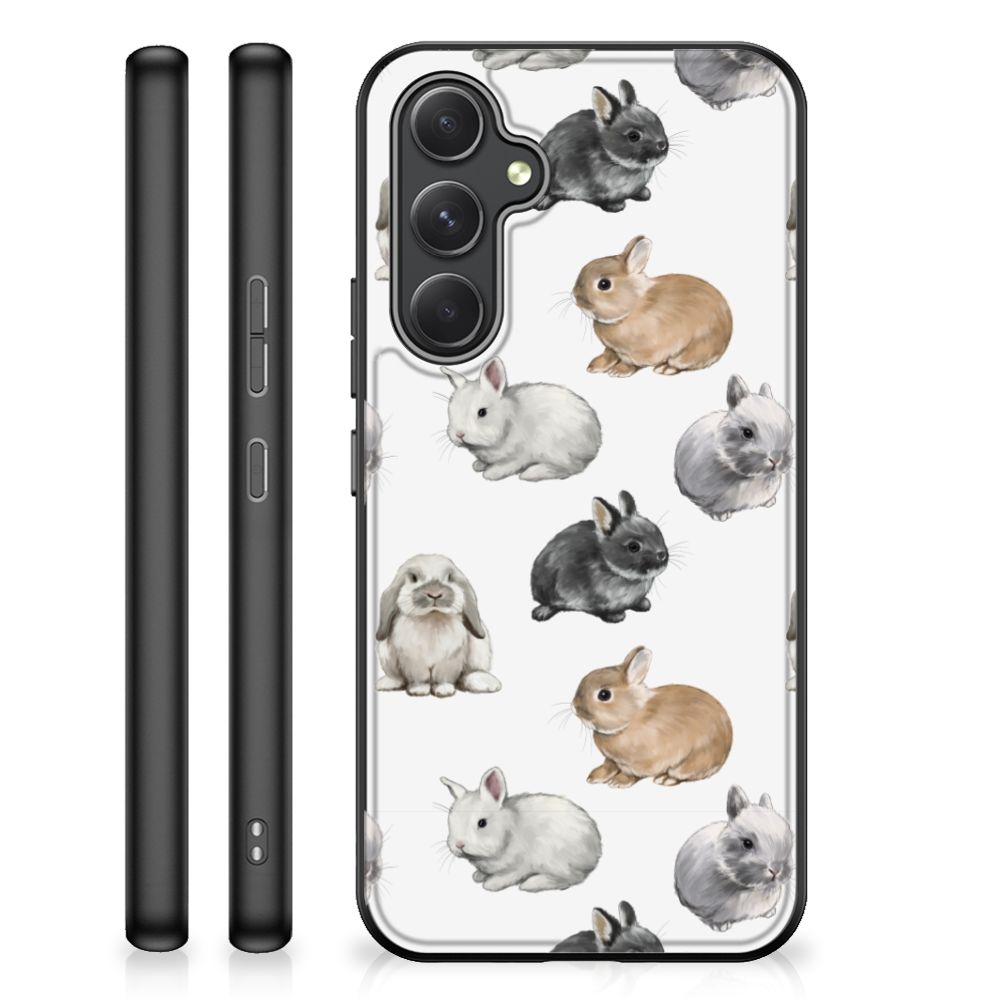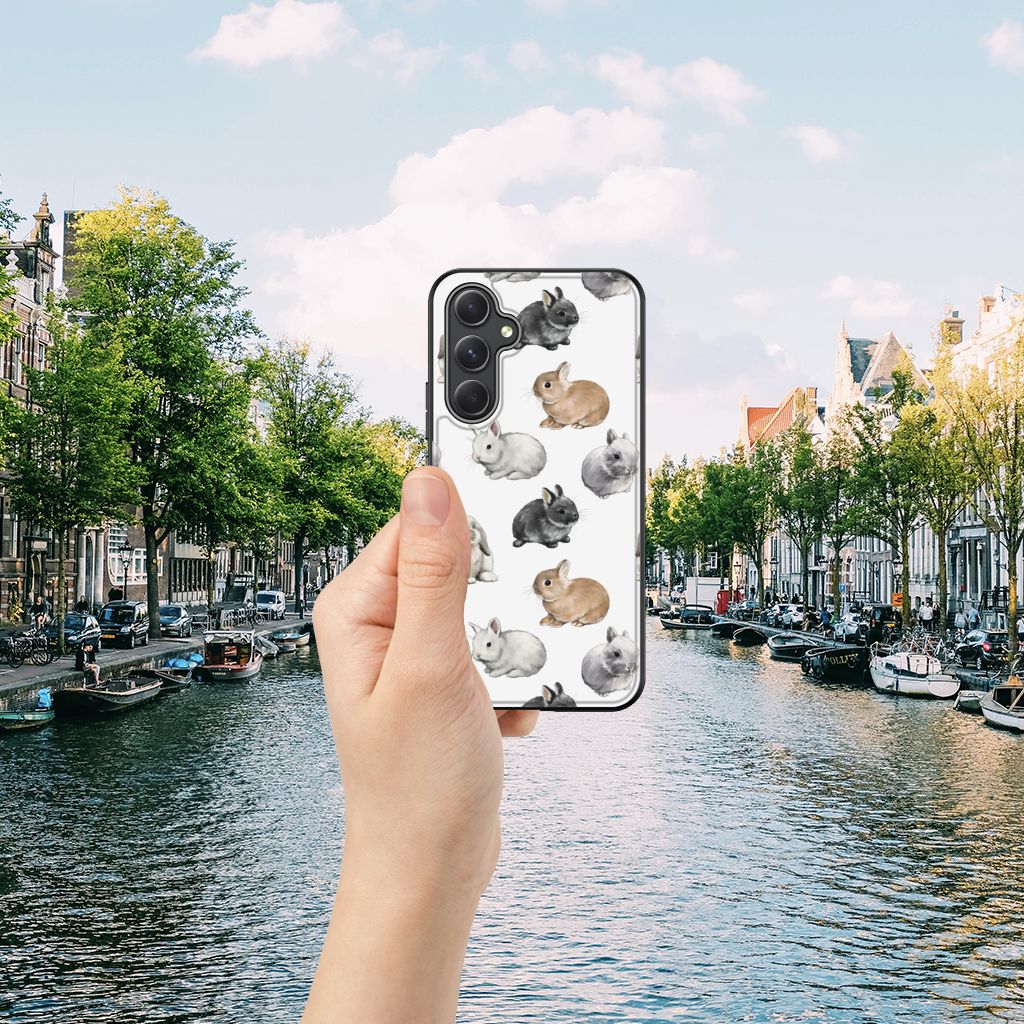 Wist je dat er wel 50 verschillende konijnenrassen zijn die zich onderscheiden in kleur, vacht, bouw en formaat? Daarom kon dit design met konijntjes eigenlijk niet ontbreken in onze collectie hoesjes. Wij zijn in ieder geval helemaal verliefd op deze schattige konijntjes. Dit design wordt geprint op een Dierenprint Telefoonhoesje speciaal op maat gemaakt voor de Samsung Galaxy A54. Het ligt prettig in de hand en is licht van gewicht. Het is een mix van hardcase en TPU. Deze combinatie samen zorgt wat ons betreft voor een perfect hoesje als je van niet te veel poespas houdt. Alleen de achterkant van je telefoon wordt beschermd. Daarom adviseren wij om dit hoesje in combinatie met een screenprotector te gebruiken. Bestel vandaag nog dit super schattige hoesje met konijntjes!