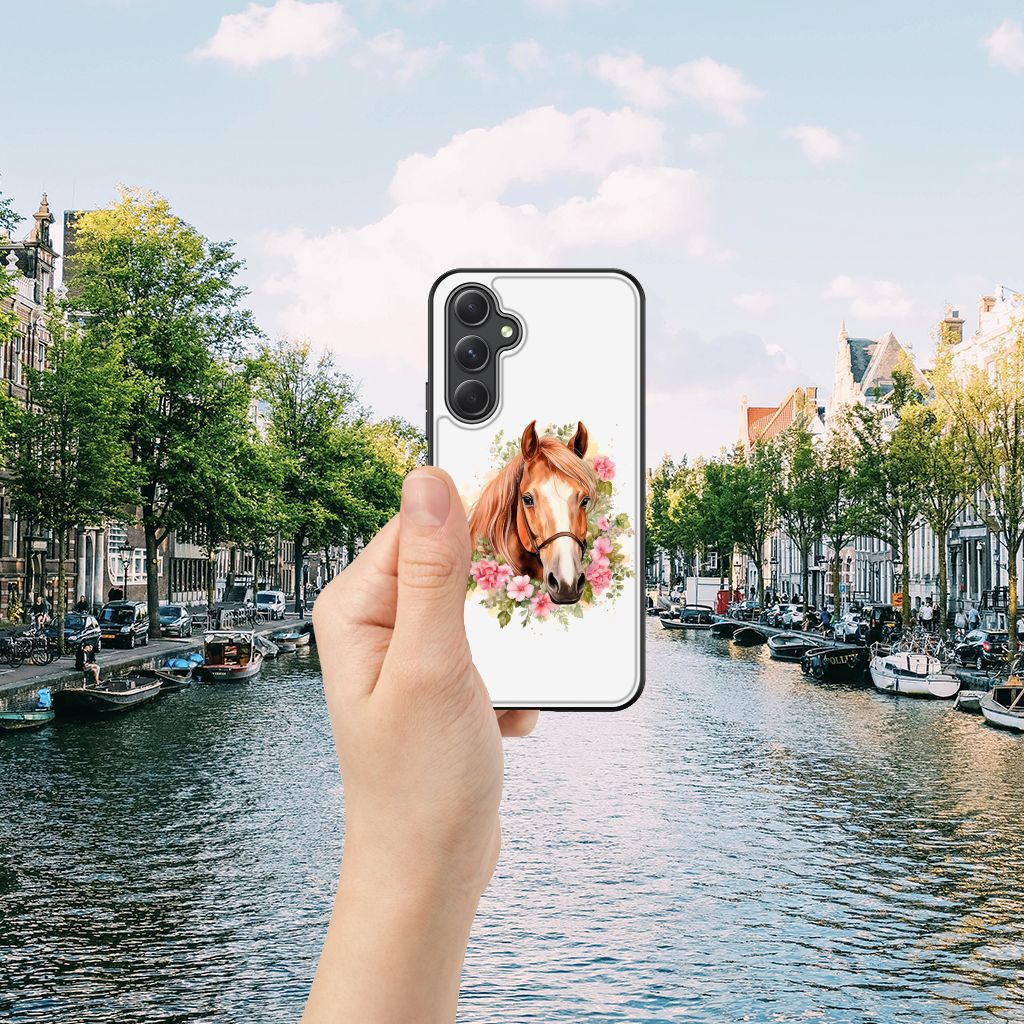 Toen we in 2014 begonnen met het bedrukken van telefoonhoesjes, was een van de eerste designs eentje met paarden erop. Nu zoveel jaar later is dit een van onze populairste hoesjes voor zowel jong als oud. Vandaar dat we nog een design toevoegen aan onze collectie met een paard erop, hopelijk wordt dit design net zo geliefd! Het design wordt geprint op een Dierenprint Telefoonhoesje speciaal op maat gemaakt voor de Samsung Galaxy A54. Het ligt prettig in de hand en is licht van gewicht. Het is een mix van hardcase en TPU. Deze combinatie samen zorgt wat ons betreft voor een perfect hoesje als je van niet te veel poespas houdt. Alleen de achterkant van je telefoon wordt beschermd. Daarom adviseren wij om dit hoesje in combinatie met een screenprotector te gebruiken. Bestel vandaag nog dit mooie design hoesje met paard!