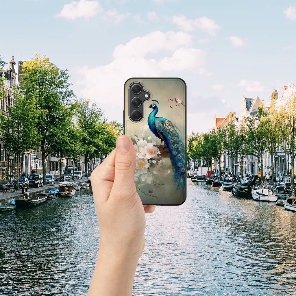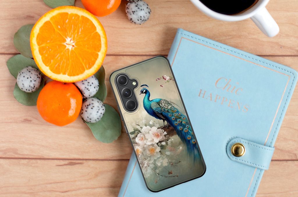 Wist je dat de sleep van pauwen bestaat uit wel 150 kleurige veren? Als de haan zijn sleep opzet om een vrouwtje te veroveren dan zie je deze veren het duidelijkst. Er zijn mensen die geloven dat een pauwenveer geluk brengt! Daarom mag dit romantische vintage pauwen design zeker niet ontbreken in onze collectie. Het blijven toch echt prachtige en fascinerende dieren om te zien! Dit design wordt geprint op een Dierenprint Telefoonhoesje speciaal op maat gemaakt voor de Samsung Galaxy A54. Het ligt prettig in de hand en is licht van gewicht. Het is een mix van hardcase en TPU. Deze combinatie samen zorgt wat ons betreft voor een perfect hoesje als je van niet te veel poespas houdt. Alleen de achterkant van je telefoon wordt beschermd. Daarom adviseren wij om dit hoesje in combinatie met een screenprotector te gebruiken. Bestel vandaag nog dit romantische vintage pauwen design hoesje!