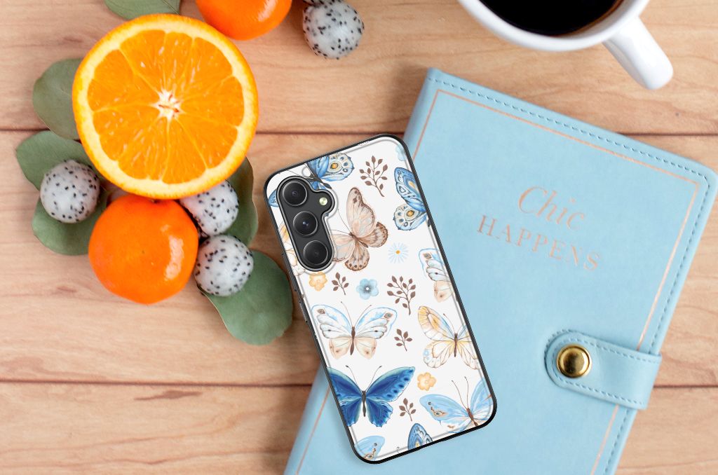 Wist je dat vlinders symbool staan voor geluk, vrijheid en liefde? Veel mensen worden daarom vrolijk als ze een vlinder voorbij zien fladderen. Hoe leuk is het dan om dit vlinder design op jouw Samsung Galaxy A54 te hebben? Zo word jij zeker vrolijk bij het zien van je telefoon. Dit vlinder design wordt geprint op een Dierenprint Telefoonhoesje. Het ligt prettig in de hand en is licht van gewicht. Het is een mix van hardcase en TPU. Deze combinatie samen zorgt wat ons betreft voor een perfect hoesje als je van niet te veel poespas houdt. Alleen de achterkant van je telefoon wordt beschermd. Daarom adviseren wij om dit hoesje in combinatie met een screenprotector te gebruiken. Bestel vandaag nog dit vrolijke smartphonehoesje met vlinder design!