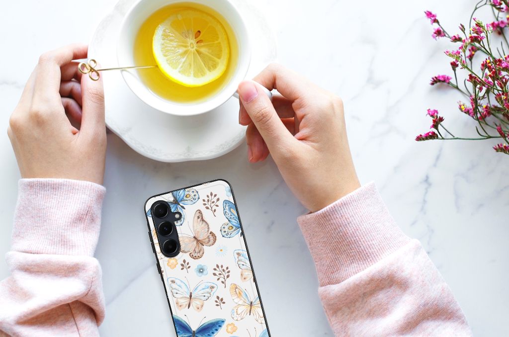 Wist je dat vlinders symbool staan voor geluk, vrijheid en liefde? Veel mensen worden daarom vrolijk als ze een vlinder voorbij zien fladderen. Hoe leuk is het dan om dit vlinder design op jouw Samsung Galaxy A55 te hebben? Zo word jij zeker vrolijk bij het zien van je telefoon. Dit vlinder design wordt geprint op een Dierenprint Telefoonhoesje. Het ligt prettig in de hand en is licht van gewicht. Het is een mix van hardcase en TPU. Deze combinatie samen zorgt wat ons betreft voor een perfect hoesje als je van niet te veel poespas houdt. Alleen de achterkant van je telefoon wordt beschermd. Daarom adviseren wij om dit hoesje in combinatie met een screenprotector te gebruiken. Bestel vandaag nog dit vrolijke smartphonehoesje met vlinder design!