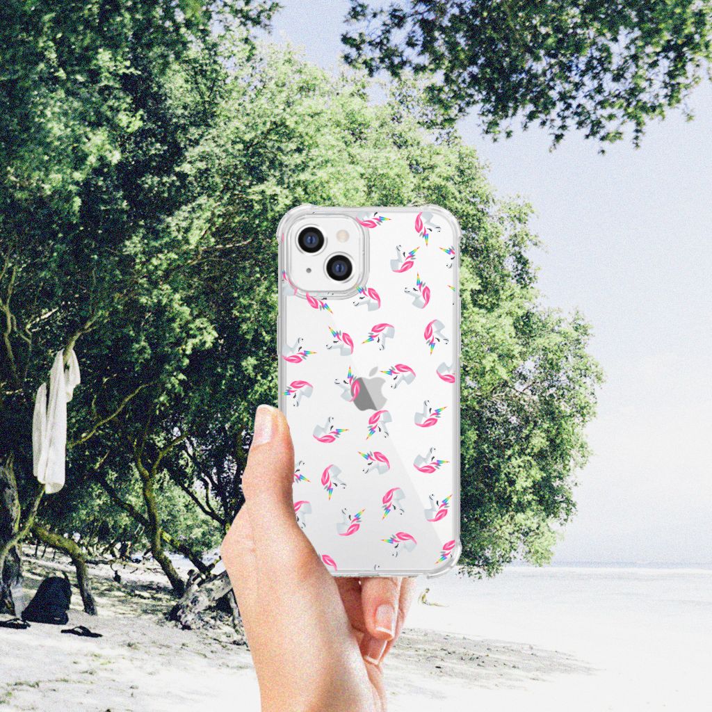 Vind jij unicorns ook zo leuk? Dan hebben wij het perfecte hoesje voor jouw Apple iPhone 14 Plus! Met deze schattige unicorns heb jij gegarandeerd iets unieks in handen. Dit Doorzichtige Silicone Hoesje ligt prettig in de hand en is licht van gewicht. Ook fijn zijn de extra dikke hoeken en randen, waardoor je Apple iPhone 14 Plus goed beschermd is bij een val. Alleen de achterkant van je telefoon wordt beschermd. Daarom adviseren wij om dit hoesje in combinatie met een screenprotector te gebruiken. Het unicorn design wordt alleen geprint en de achtergrond blijft transparant. Hierdoor zie je altijd de kleur van je smartphone. Hoe leuk is dat? Bescherm jouw telefoon vandaag nog met dit unicorn hoesje!