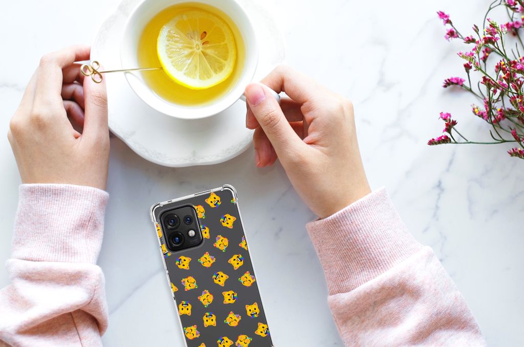 Ook zo gek op katten, maar wil je een keer iets anders? Dan hebben wij het perfecte hoesje voor jouw Motorola Edge 40 Pro met gekke katten emojis. Met dit Doorzichtige Silicone Hoesje heb jij 100% zeker een uniek hoesje in handen. Dit hoesje ligt prettig in de hand en is licht van gewicht. Ook fijn zijn de extra dikke hoeken en randen, waardoor je Motorola Edge 40 Pro goed beschermd is bij een val. Alleen de achterkant van je telefoon wordt beschermd. Daarom adviseren wij om dit hoesje in combinatie met een screenprotector te gebruiken. Dit katten design wordt alleen geprint en de achtergrond blijft transparant. Hierdoor zie je altijd de kleur van je smartphone. Hoe leuk is dat? Bescherm jouw telefoon vandaag nog met dit te gekke katten emojis hoesje!