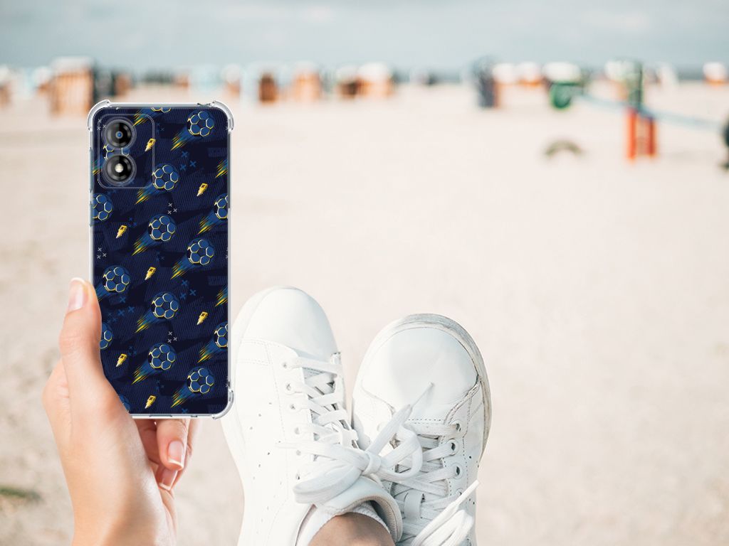 Wist je dat voetbal in 1865 is ontstaan in Nederland door wonende en werkende Britten in ons land? Tegenwoordig ademt Nederland voetbal en is het een van de meest beoefende sport. Iedereen kijkt en speelt het graag en daarom mag dit voetbal design hoesjes zeker niet ontbreken in onze collectie. Dit design wordt geprint op een Doorzichtige Silicone Hoesje speciaal op maat gemaakt voor de Motorola Moto E13. Ook fijn zijn de extra dikke hoeken en randen, waardoor je smartphone goed beschermd is bij een val. Alleen de achterkant van je telefoon wordt beschermd. Daarom adviseren wij om dit hoesje in combinatie met een screenprotector te gebruiken. Bestel vandaag nog dit telefoonhoesje met toffe voetbal design!