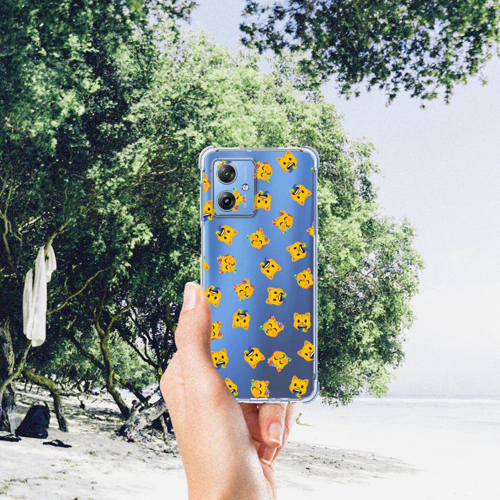 Ook zo gek op katten, maar wil je een keer iets anders? Dan hebben wij het perfecte hoesje voor jouw Motorola Moto G54 met gekke katten emojis. Met dit Doorzichtige Silicone Hoesje heb jij 100% zeker een uniek hoesje in handen. Dit hoesje ligt prettig in de hand en is licht van gewicht. Ook fijn zijn de extra dikke hoeken en randen, waardoor je Motorola Moto G54 goed beschermd is bij een val. Alleen de achterkant van je telefoon wordt beschermd. Daarom adviseren wij om dit hoesje in combinatie met een screenprotector te gebruiken. Dit katten design wordt alleen geprint en de achtergrond blijft transparant. Hierdoor zie je altijd de kleur van je smartphone. Hoe leuk is dat? Bescherm jouw telefoon vandaag nog met dit te gekke katten emojis hoesje!