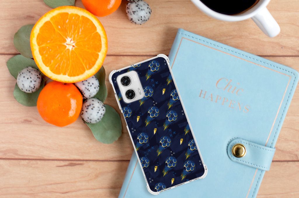 Wist je dat voetbal in 1865 is ontstaan in Nederland door wonende en werkende Britten in ons land? Tegenwoordig ademt Nederland voetbal en is het een van de meest beoefende sport. Iedereen kijkt en speelt het graag en daarom mag dit voetbal design hoesjes zeker niet ontbreken in onze collectie. Dit design wordt geprint op een Doorzichtige Silicone Hoesje speciaal op maat gemaakt voor de Motorola Moto G73. Ook fijn zijn de extra dikke hoeken en randen, waardoor je smartphone goed beschermd is bij een val. Alleen de achterkant van je telefoon wordt beschermd. Daarom adviseren wij om dit hoesje in combinatie met een screenprotector te gebruiken. Bestel vandaag nog dit telefoonhoesje met toffe voetbal design!