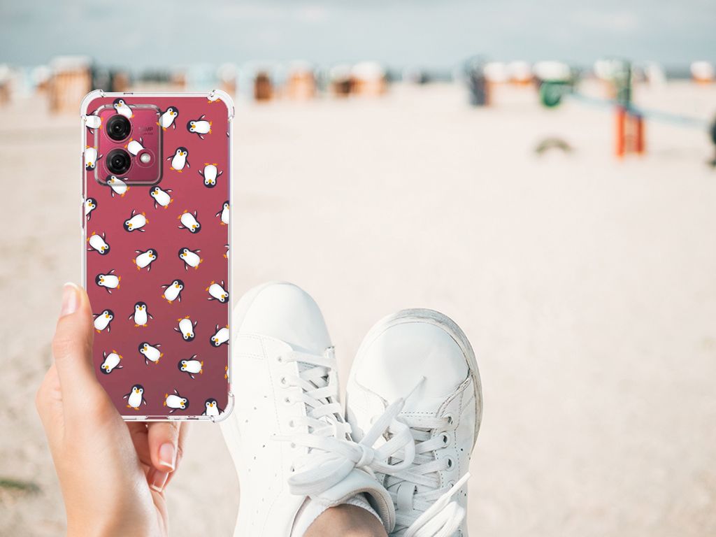 De pinguïn verovert met zijn gewaggel het hart van iedereen. Daarom kan een hoesje met pinguïns niet ontbreken in ons assortiment en ook niet op jouw Motorola Moto G84 natuurlijk! Dit Doorzichtige Silicone Hoesje ligt prettig in de hand en is licht van gewicht. Ook fijn zijn de extra dikke hoeken en randen, waardoor je Motorola Moto G84 goed beschermd is bij een val. Alleen de achterkant van je telefoon wordt beschermd. Daarom adviseren wij om dit hoesje in combinatie met een screenprotector te gebruiken. Dit pinguïn design wordt alleen geprint en de achtergrond blijft transparant. Hierdoor zie je altijd de kleur van je smartphone. Hoe leuk is dat? Bescherm jouw telefoon vandaag nog met dit super schattige pinguïn hoesje!