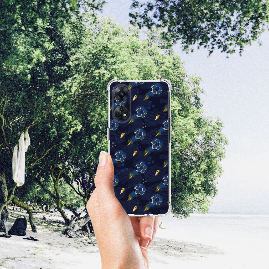 Wist je dat voetbal in 1865 is ontstaan in Nederland door wonende en werkende Britten in ons land? Tegenwoordig ademt Nederland voetbal en is het een van de meest beoefende sport. Iedereen kijkt en speelt het graag en daarom mag dit voetbal design hoesjes zeker niet ontbreken in onze collectie. Dit design wordt geprint op een Doorzichtige Silicone Hoesje speciaal op maat gemaakt voor de OPPO Reno8 T 4G. Ook fijn zijn de extra dikke hoeken en randen, waardoor je smartphone goed beschermd is bij een val. Alleen de achterkant van je telefoon wordt beschermd. Daarom adviseren wij om dit hoesje in combinatie met een screenprotector te gebruiken. Bestel vandaag nog dit telefoonhoesje met toffe voetbal design!