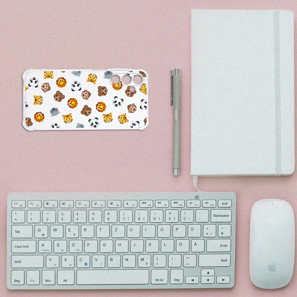 Ben jij ook zo gek op dieren? En kan je geen keuze maken uit al onze dieren design hoesjes? Kies dan voor dit leuke Samsung Galaxy A15 hoesje met verschillende dieren emojis. Dit Doorzichtige Silicone Hoesje ligt prettig in de hand en is licht van gewicht. Ook fijn zijn de extra dikke hoeken en randen, waardoor je Samsung Galaxy A15 goed beschermd is bij een val. Alleen de achterkant van je telefoon wordt beschermd. Daarom adviseren wij om dit hoesje in combinatie met een screenprotector te gebruiken. Het dieren design wordt alleen geprint en de achtergrond blijft transparant. Hierdoor zie je altijd de kleur van je smartphone. Hoe leuk is dat? Bescherm jouw telefoon vandaag nog met dit dieren emojis hoesje!