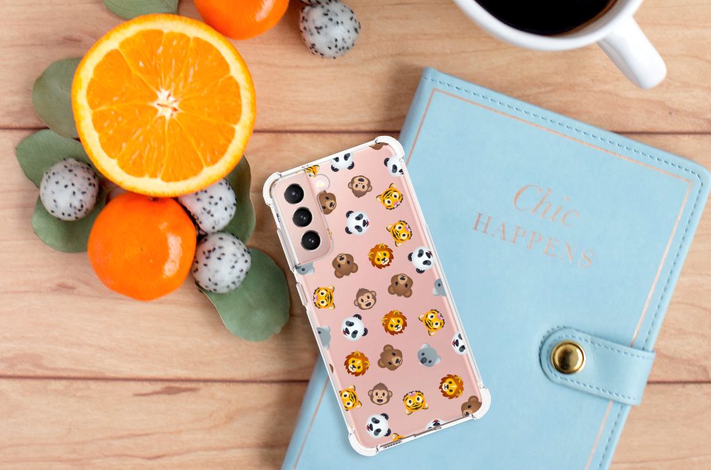 Ben jij ook zo gek op dieren? En kan je geen keuze maken uit al onze dieren design hoesjes? Kies dan voor dit leuke Samsung Galaxy S21 FE hoesje met verschillende dieren emojis. Dit Doorzichtige Silicone Hoesje ligt prettig in de hand en is licht van gewicht. Ook fijn zijn de extra dikke hoeken en randen, waardoor je Samsung Galaxy S21 FE goed beschermd is bij een val. Alleen de achterkant van je telefoon wordt beschermd. Daarom adviseren wij om dit hoesje in combinatie met een screenprotector te gebruiken. Het dieren design wordt alleen geprint en de achtergrond blijft transparant. Hierdoor zie je altijd de kleur van je smartphone. Hoe leuk is dat? Bescherm jouw telefoon vandaag nog met dit dieren emojis hoesje!