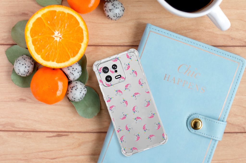 Vind jij unicorns ook zo leuk? Dan hebben wij het perfecte hoesje voor jouw Xiaomi 13! Met deze schattige unicorns heb jij gegarandeerd iets unieks in handen. Dit Doorzichtige Silicone Hoesje ligt prettig in de hand en is licht van gewicht. Ook fijn zijn de extra dikke hoeken en randen, waardoor je Xiaomi 13 goed beschermd is bij een val. Alleen de achterkant van je telefoon wordt beschermd. Daarom adviseren wij om dit hoesje in combinatie met een screenprotector te gebruiken. Het unicorn design wordt alleen geprint en de achtergrond blijft transparant. Hierdoor zie je altijd de kleur van je smartphone. Hoe leuk is dat? Bescherm jouw telefoon vandaag nog met dit unicorn hoesje!