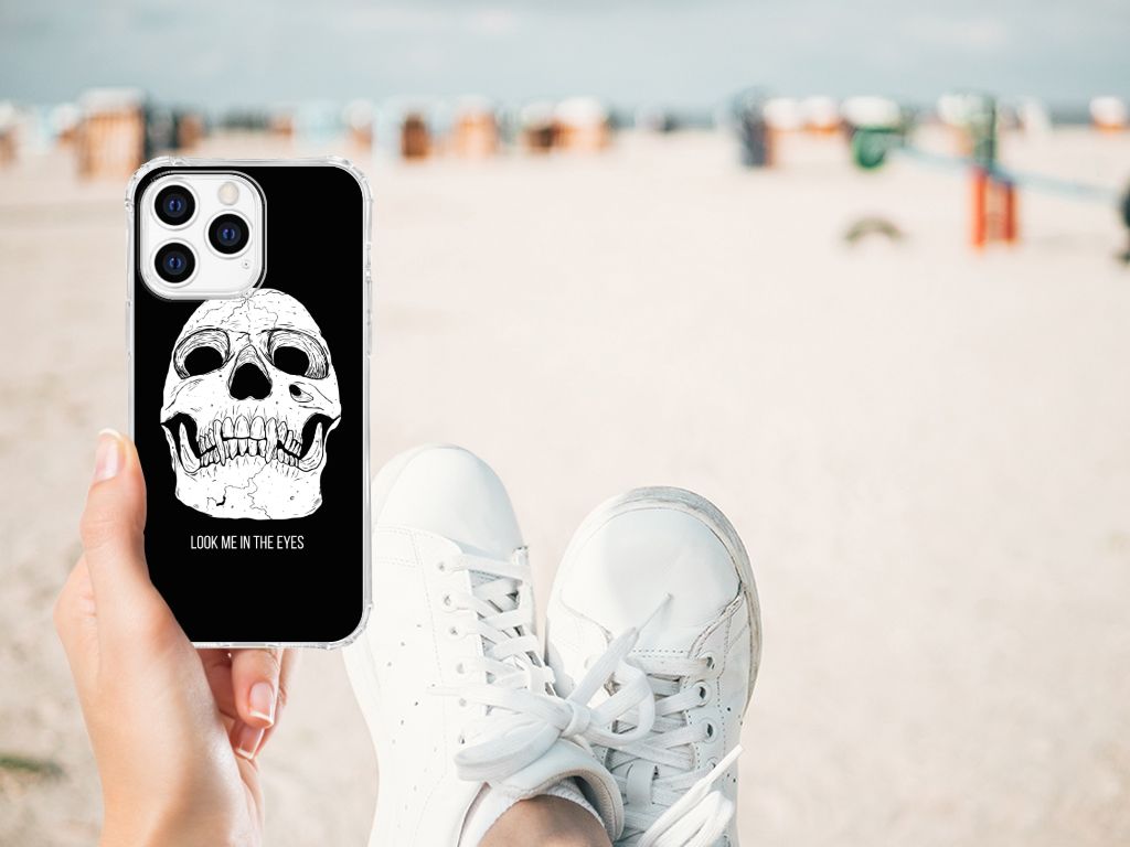 Ben je op zoek naar een uniek telefoonhoesje voor je Apple iPhone 14 Pro Max? Dan ben je bij B2C Telecom aan het juiste adres! Speciaal voor jou hebben we dit prachtige Skull Eyes design in onze collectie hoesjes opgenomen. Het design wordt bedrukt op een Extreme Case en is gemaakt van flexibel rubber. Het hoesje is perfect voor de actieve smartphonegebruiker door de opstaande randen/hoeken. Denk aan mensen die veel sporten, reizen of wandelen en net iets meer zekerheid willen als het op hun geliefde telefoon aankomt. Het design wordt alleen aan de bovenkant van het hoesje bedrukt en de randen blijven transparant. Aan de zijkanten zijn uitsparingen gemaakt waardoor je met gemak alle knoppen en poorten kunt bedienen. Wij adviseren om dit hoesje in combinatie met een screenprotector te gebruiken voor een langere levensduur van je telefoon. Wil je dit hoesje nog iets extra's geven? Voeg dan gratis je naam of een quote toe! Is dit design hoesje toch niet helemaal wat je zocht? Ontwerp dan zelf een hoesje in ons ontwerpprogramma.