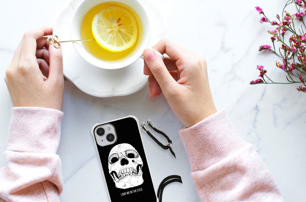 Ben je op zoek naar een uniek telefoonhoesje voor je iPhone 14? Dan ben je bij B2C Telecom aan het juiste adres! Speciaal voor jou hebben we dit prachtige Skull Eyes design in onze collectie hoesjes opgenomen. Het design wordt bedrukt op een Extreme Case en is gemaakt van flexibel rubber. Het hoesje is perfect voor de actieve smartphonegebruiker door de opstaande randen/hoeken. Denk aan mensen die veel sporten, reizen of wandelen en net iets meer zekerheid willen als het op hun geliefde telefoon aankomt. Het design wordt alleen aan de bovenkant van het hoesje bedrukt en de randen blijven transparant. Aan de zijkanten zijn uitsparingen gemaakt waardoor je met gemak alle knoppen en poorten kunt bedienen. Wij adviseren om dit hoesje in combinatie met een screenprotector te gebruiken voor een langere levensduur van je telefoon. Wil je dit hoesje nog iets extra's geven? Voeg dan gratis je naam of een quote toe! Is dit design hoesje toch niet helemaal wat je zocht? Ontwerp dan zelf een hoesje in ons ontwerpprogramma.