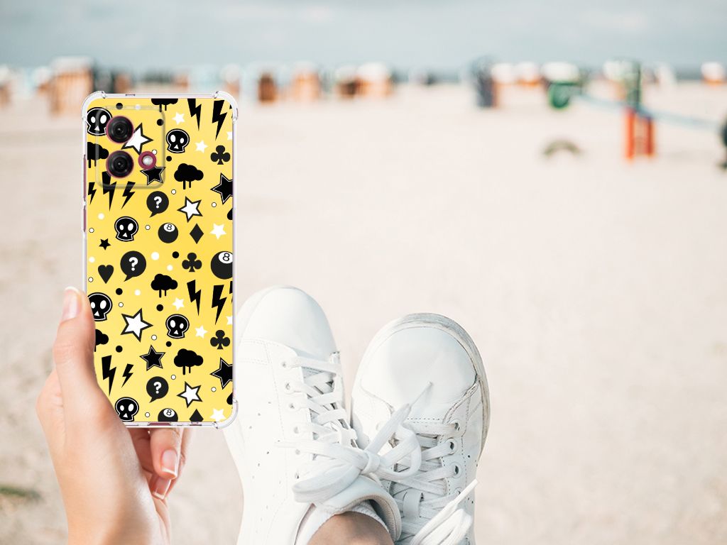 Ben je op zoek naar een uniek telefoonhoesje voor je Motorola Moto G84? Dan ben je bij B2C Telecom aan het juiste adres! Speciaal voor jou hebben we dit prachtige Punk Yellow design in onze collectie hoesjes opgenomen. Het design wordt bedrukt op een Extreme Case en is gemaakt van flexibel rubber. Het hoesje is perfect voor de actieve smartphonegebruiker door de opstaande randen/hoeken. Denk aan mensen die veel sporten, reizen of wandelen en net iets meer zekerheid willen als het op hun geliefde telefoon aankomt. Het design wordt alleen aan de bovenkant van het hoesje bedrukt en de randen blijven transparant. Aan de zijkanten zijn uitsparingen gemaakt waardoor je met gemak alle knoppen en poorten kunt bedienen. Wij adviseren om dit hoesje in combinatie met een screenprotector te gebruiken voor een langere levensduur van je telefoon. Wil je dit hoesje nog iets extra's geven? Voeg dan gratis je naam of een quote toe! Is dit design hoesje toch niet helemaal wat je zocht? Ontwerp dan zelf een hoesje in ons ontwerpprogramma.