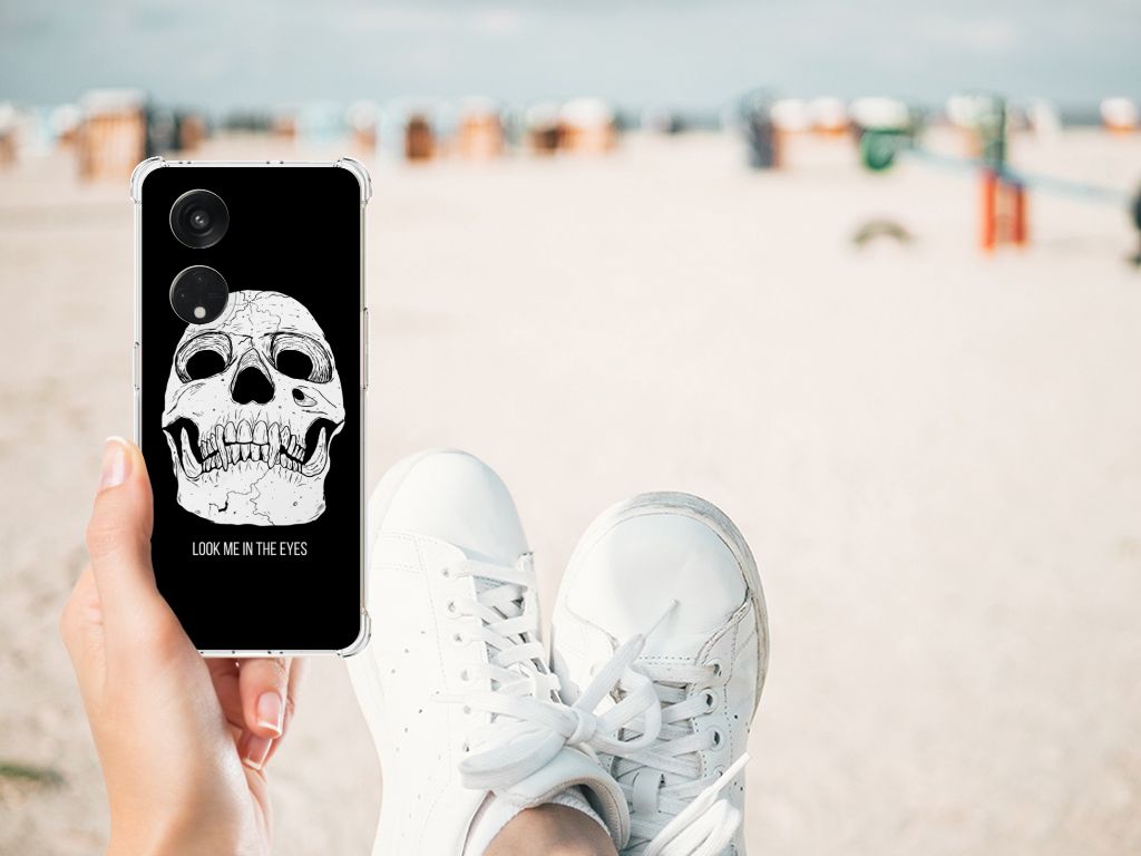 Ben je op zoek naar een uniek telefoonhoesje voor je OPPO Reno8 T 5G? Dan ben je bij B2C Telecom aan het juiste adres! Speciaal voor jou hebben we dit prachtige Skull Eyes design in onze collectie hoesjes opgenomen. Het design wordt bedrukt op een Extreme Case en is gemaakt van flexibel rubber. Het hoesje is perfect voor de actieve smartphonegebruiker door de opstaande randen/hoeken. Denk aan mensen die veel sporten, reizen of wandelen en net iets meer zekerheid willen als het op hun geliefde telefoon aankomt. Het design wordt alleen aan de bovenkant van het hoesje bedrukt en de randen blijven transparant. Aan de zijkanten zijn uitsparingen gemaakt waardoor je met gemak alle knoppen en poorten kunt bedienen. Wij adviseren om dit hoesje in combinatie met een screenprotector te gebruiken voor een langere levensduur van je telefoon. Wil je dit hoesje nog iets extra's geven? Voeg dan gratis je naam of een quote toe! Is dit design hoesje toch niet helemaal wat je zocht? Ontwerp dan zelf een hoesje in ons ontwerpprogramma.