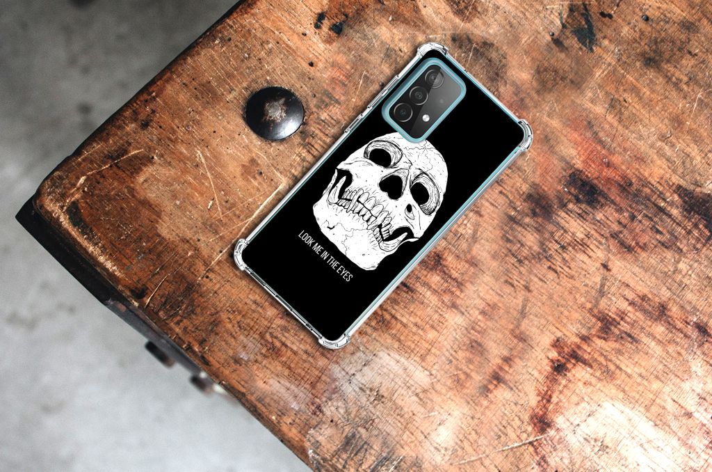 Ben je op zoek naar een uniek telefoonhoesje voor je Samsung Galaxy A52 4G/5G? Dan ben je bij B2C Telecom aan het juiste adres! Speciaal voor jou hebben we dit prachtige Skull Eyes design in onze collectie hoesjes opgenomen. Het design wordt bedrukt op een Extreme Case en is gemaakt van flexibel rubber. Het hoesje is perfect voor de actieve smartphonegebruiker door de opstaande randen/hoeken. Denk aan mensen die veel sporten, reizen of wandelen en net iets meer zekerheid willen als het op hun geliefde telefoon aankomt. Het design wordt alleen aan de bovenkant van het hoesje bedrukt en de randen blijven transparant. Aan de zijkanten zijn uitsparingen gemaakt waardoor je met gemak alle knoppen en poorten kunt bedienen. Wij adviseren om dit hoesje in combinatie met een screenprotector te gebruiken voor een langere levensduur van je telefoon. Wil je dit hoesje nog iets extra's geven? Voeg dan gratis je naam of een quote toe! Is dit design hoesje toch niet helemaal wat je zocht? Ontwerp dan zelf een hoesje in ons ontwerpprogramma.