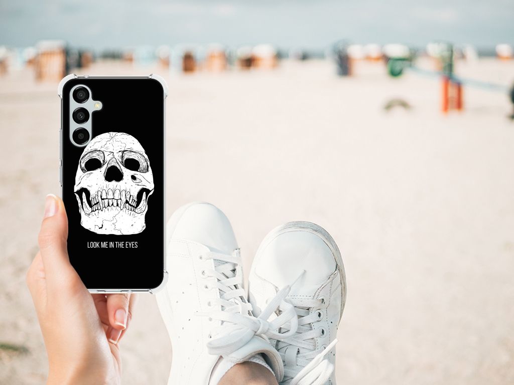 Ben je op zoek naar een uniek telefoonhoesje voor je Samsung Galaxy A54? Dan ben je bij B2C Telecom aan het juiste adres! Speciaal voor jou hebben we dit prachtige Skull Eyes design in onze collectie hoesjes opgenomen. Het design wordt bedrukt op een Extreme Case en is gemaakt van flexibel rubber. Het hoesje is perfect voor de actieve smartphonegebruiker door de opstaande randen/hoeken. Denk aan mensen die veel sporten, reizen of wandelen en net iets meer zekerheid willen als het op hun geliefde telefoon aankomt. Het design wordt alleen aan de bovenkant van het hoesje bedrukt en de randen blijven transparant. Aan de zijkanten zijn uitsparingen gemaakt waardoor je met gemak alle knoppen en poorten kunt bedienen. Wij adviseren om dit hoesje in combinatie met een screenprotector te gebruiken voor een langere levensduur van je telefoon. Wil je dit hoesje nog iets extra's geven? Voeg dan gratis je naam of een quote toe! Is dit design hoesje toch niet helemaal wat je zocht? Ontwerp dan zelf een hoesje in ons ontwerpprogramma.