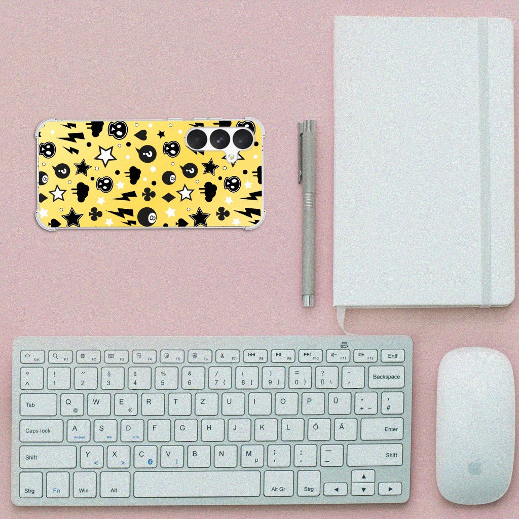 Ben je op zoek naar een uniek telefoonhoesje voor je Samsung Galaxy A55? Dan ben je bij B2C Telecom aan het juiste adres! Speciaal voor jou hebben we dit prachtige Punk Yellow design in onze collectie hoesjes opgenomen. Het design wordt bedrukt op een Extreme Case en is gemaakt van flexibel rubber. Het hoesje is perfect voor de actieve smartphonegebruiker door de opstaande randen/hoeken. Denk aan mensen die veel sporten, reizen of wandelen en net iets meer zekerheid willen als het op hun geliefde telefoon aankomt. Het design wordt alleen aan de bovenkant van het hoesje bedrukt en de randen blijven transparant. Aan de zijkanten zijn uitsparingen gemaakt waardoor je met gemak alle knoppen en poorten kunt bedienen. Wij adviseren om dit hoesje in combinatie met een screenprotector te gebruiken voor een langere levensduur van je telefoon. Wil je dit hoesje nog iets extra's geven? Voeg dan gratis je naam of een quote toe! Is dit design hoesje toch niet helemaal wat je zocht? Ontwerp dan zelf een hoesje in ons ontwerpprogramma.