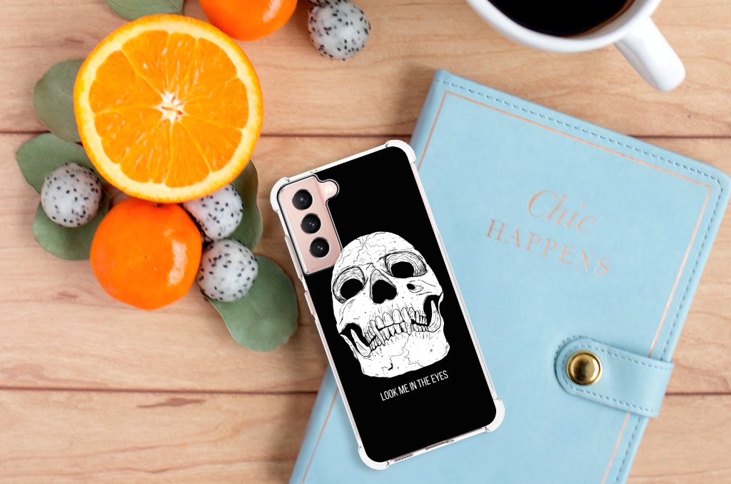 Ben je op zoek naar een uniek telefoonhoesje voor je Samsung Galaxy S21 FE? Dan ben je bij B2C Telecom aan het juiste adres! Speciaal voor jou hebben we dit prachtige Skull Eyes design in onze collectie hoesjes opgenomen. Het design wordt bedrukt op een Extreme Case en is gemaakt van flexibel rubber. Het hoesje is perfect voor de actieve smartphonegebruiker door de opstaande randen/hoeken. Denk aan mensen die veel sporten, reizen of wandelen en net iets meer zekerheid willen als het op hun geliefde telefoon aankomt. Het design wordt alleen aan de bovenkant van het hoesje bedrukt en de randen blijven transparant. Aan de zijkanten zijn uitsparingen gemaakt waardoor je met gemak alle knoppen en poorten kunt bedienen. Wij adviseren om dit hoesje in combinatie met een screenprotector te gebruiken voor een langere levensduur van je telefoon. Wil je dit hoesje nog iets extra's geven? Voeg dan gratis je naam of een quote toe! Is dit design hoesje toch niet helemaal wat je zocht? Ontwerp dan zelf een hoesje in ons ontwerpprogramma.