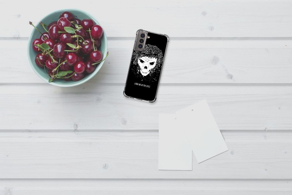 Ben je op zoek naar een uniek telefoonhoesje voor je Samsung Galaxy S21? Dan ben je bij B2C Telecom aan het juiste adres! Speciaal voor jou hebben we dit prachtige Skull Hair design in onze collectie hoesjes opgenomen. Het design wordt bedrukt op een Extreme Case en is gemaakt van flexibel rubber. Het hoesje is perfect voor de actieve smartphonegebruiker door de opstaande randen/hoeken. Denk aan mensen die veel sporten, reizen of wandelen en net iets meer zekerheid willen als het op hun geliefde telefoon aankomt. Het design wordt alleen aan de bovenkant van het hoesje bedrukt en de randen blijven transparant. Aan de zijkanten zijn uitsparingen gemaakt waardoor je met gemak alle knoppen en poorten kunt bedienen. Wij adviseren om dit hoesje in combinatie met een screenprotector te gebruiken voor een langere levensduur van je telefoon. Wil je dit hoesje nog iets extra's geven? Voeg dan gratis je naam of een quote toe! Is dit design hoesje toch niet helemaal wat je zocht? Ontwerp dan zelf een hoesje in ons ontwerpprogramma.