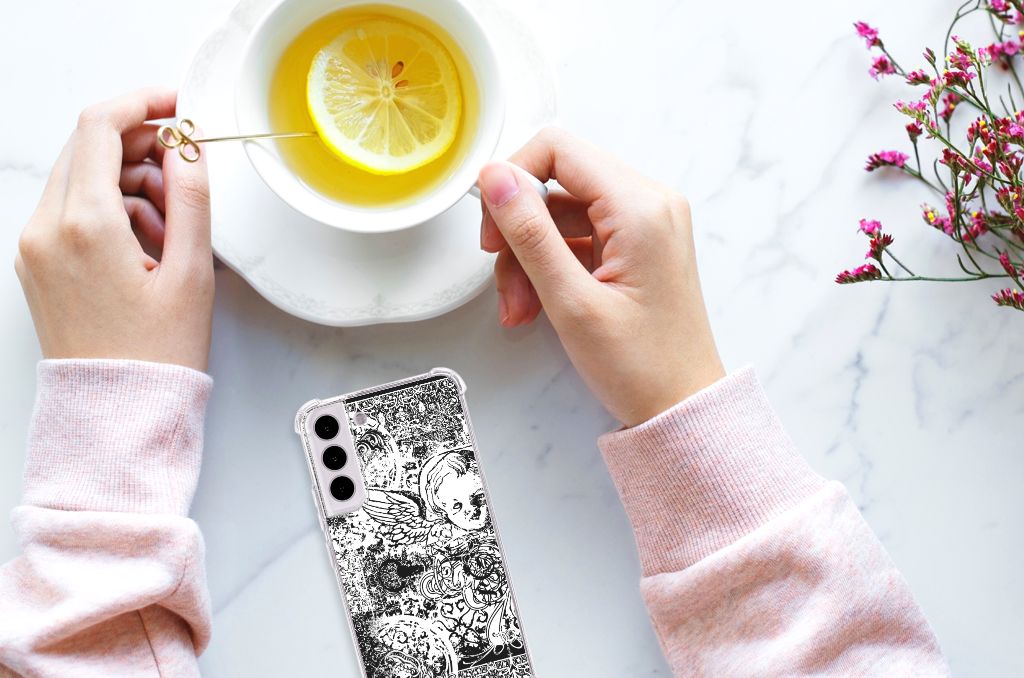Ben je op zoek naar een uniek telefoonhoesje voor je Samsung Galaxy S22 Plus? Dan ben je bij B2C Telecom aan het juiste adres! Speciaal voor jou hebben we dit prachtige Skulls Angel design in onze collectie hoesjes opgenomen. Het design wordt bedrukt op een Extreme Case en is gemaakt van flexibel rubber. Het hoesje is perfect voor de actieve smartphonegebruiker door de opstaande randen/hoeken. Denk aan mensen die veel sporten, reizen of wandelen en net iets meer zekerheid willen als het op hun geliefde telefoon aankomt. Het design wordt alleen aan de bovenkant van het hoesje bedrukt en de randen blijven transparant. Aan de zijkanten zijn uitsparingen gemaakt waardoor je met gemak alle knoppen en poorten kunt bedienen. Wij adviseren om dit hoesje in combinatie met een screenprotector te gebruiken voor een langere levensduur van je telefoon. Wil je dit hoesje nog iets extra's geven? Voeg dan gratis je naam of een quote toe! Is dit design hoesje toch niet helemaal wat je zocht? Ontwerp dan zelf een hoesje in ons ontwerpprogramma.
